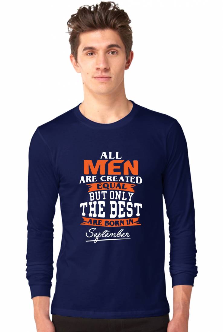 All Men Are Created In September Full Sleeve Tshirt Navy,BrandnameCotton T-shirt For Men