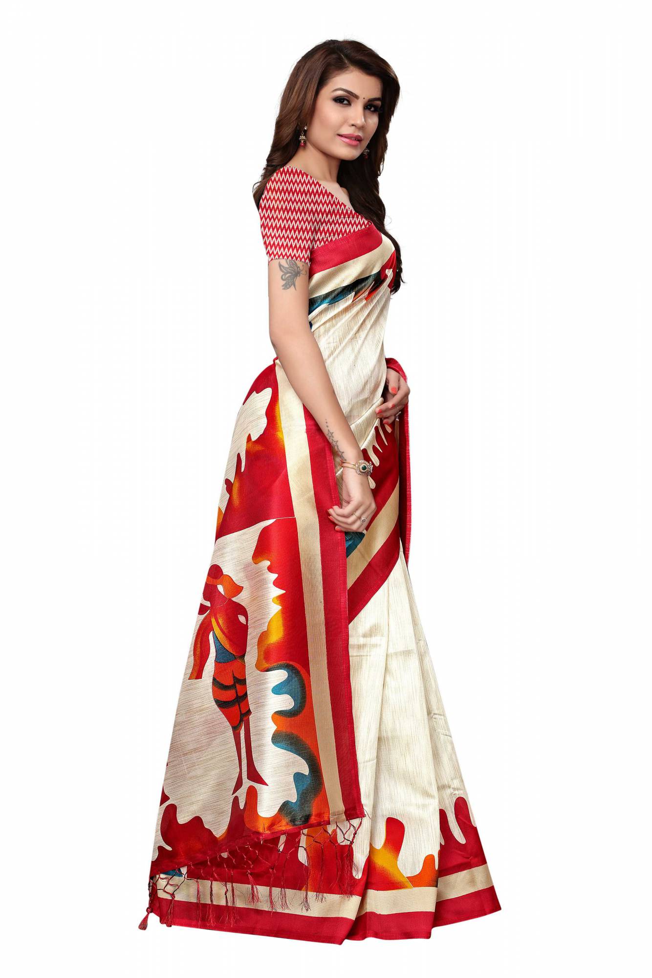 Saree Fabric : Mysore Silk Jhalor Saree, Saree Blouse Fabric : Cotton Silk , Saree Work : Printed Mysore Silk Saree, Saree Blouse Work :Self Designed Cotton Silk Blouse