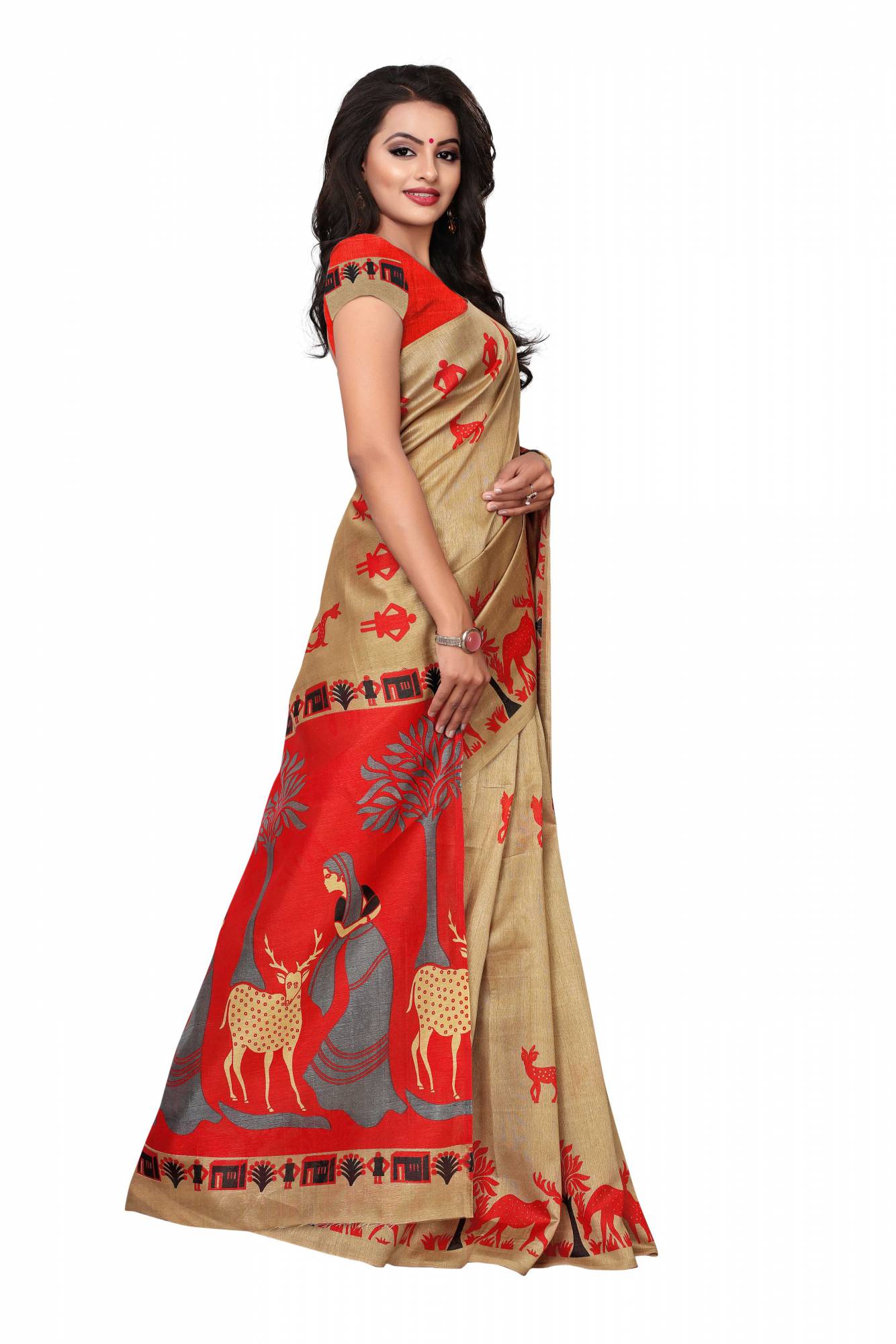 Saree Fabric : Mysore Silk Saree, Saree Blouse Fabric : Mysore Silk , Saree Work : Animal Print Mysore Silk Saree, Saree Blouse Work : Plain Mysore Silk Blouse