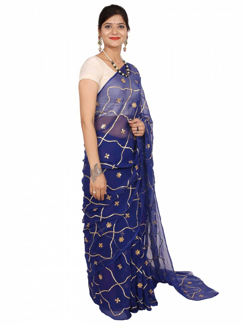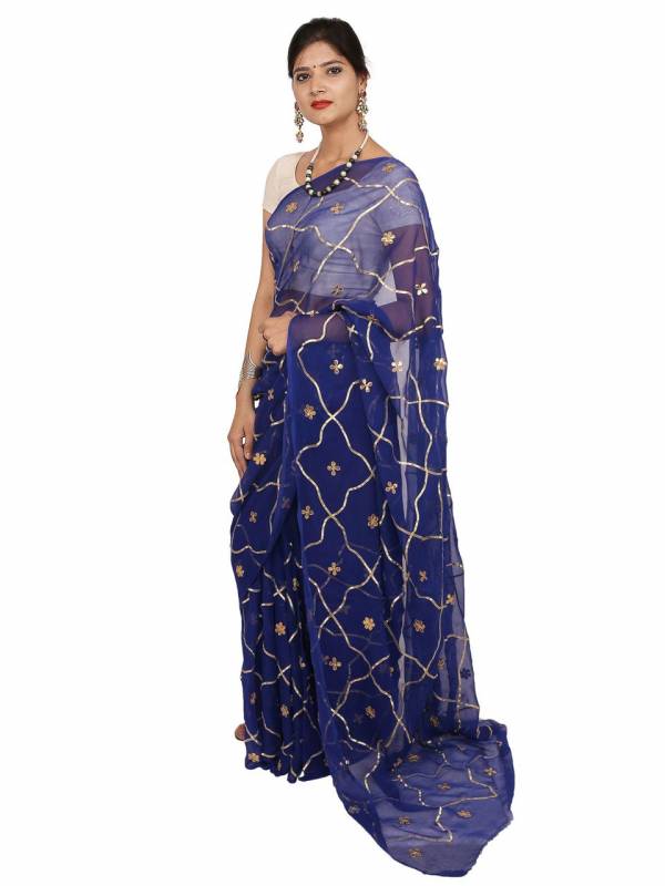 SAARVI Beautiful Golden Gotta Handwork Jaal In All Over Chiffon Saree With Blouse