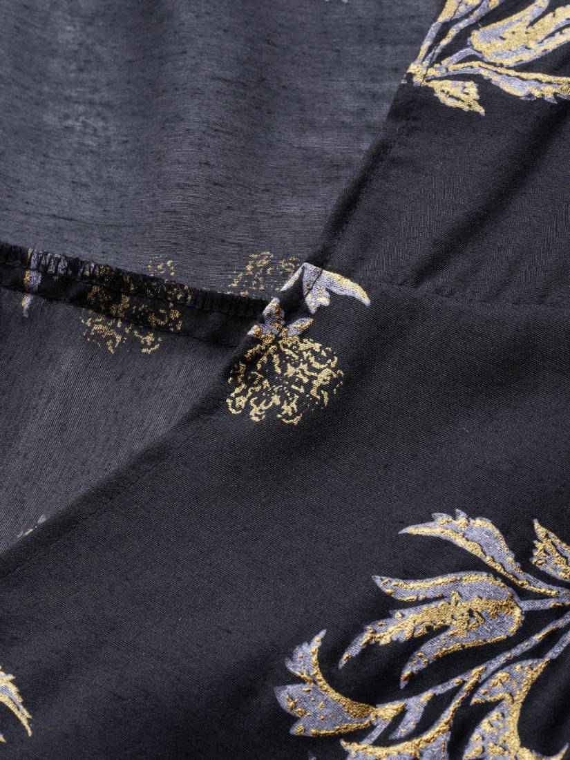 Make a statement with this elegant kurta from Anouk. For your next dinner party or family gathering, Beige and black A-line calf length kurta with trousers. Beige and black A-line kurta, 3/4th sleeves, Brown palazzo, slip-on closure,straight hem, side slits