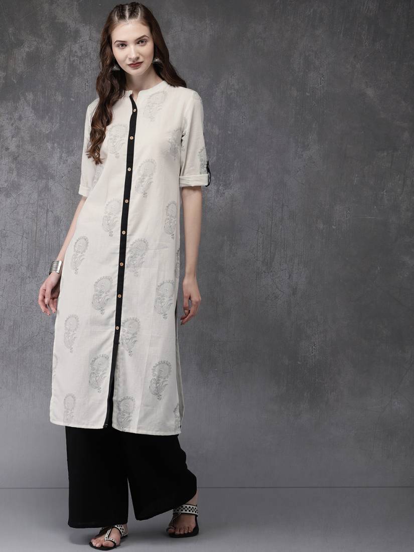 Make A Statement With This Elegant Kurta From Anouk. For Your Next Dinner Party Or Family Gathering, Off-White And Black Printed Kurta With Palazzos A-line Calf Length Kurta . Off-White... Read More