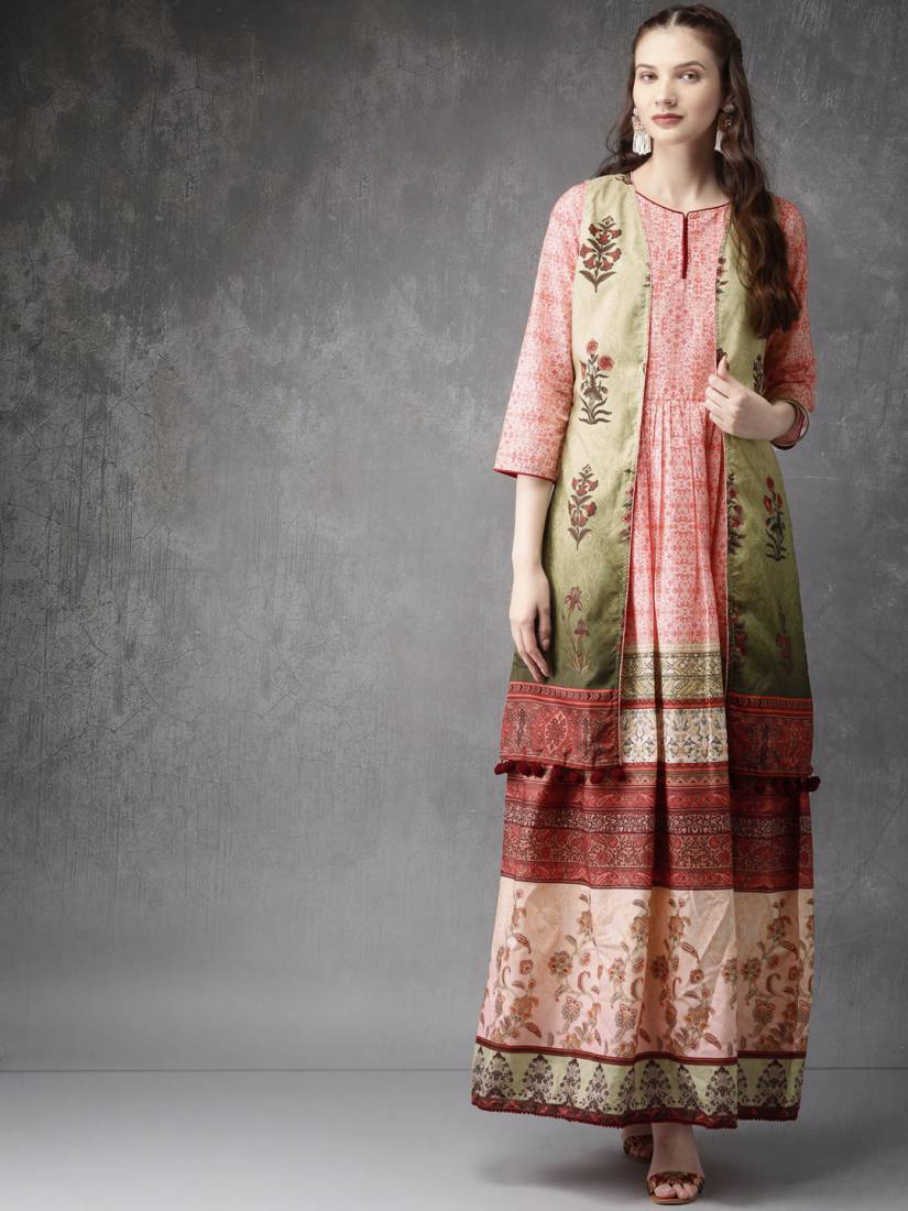 Make A Statement With This Elegant Kurta From Anouk. For Your Next Dinner Party Or Family Gathering, Pink And Green A-line Calf Length Kurta . Pink And Green A-line... Read More