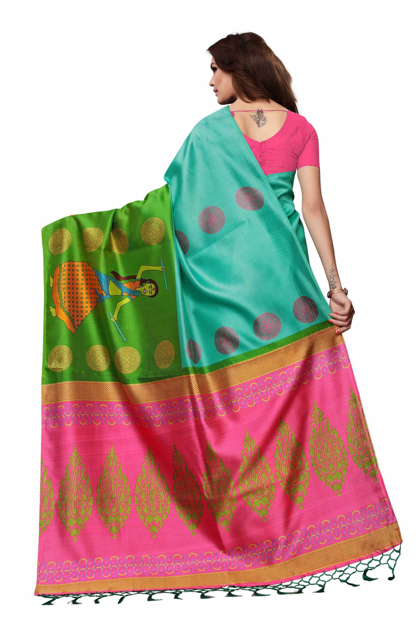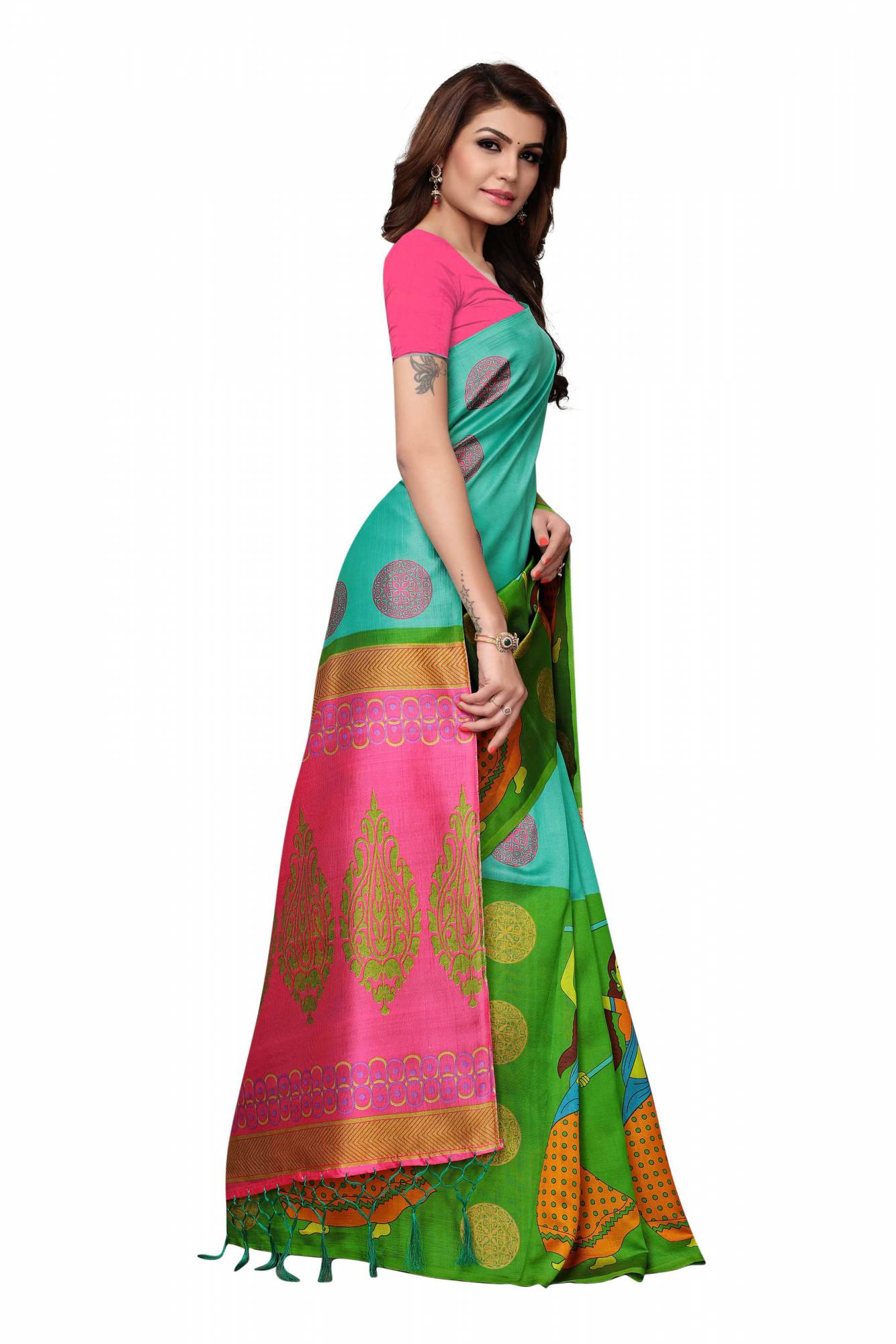 Saree Fabric : Mysore Silk Jhalor Saree, Saree Blouse Fabric : Cotton Silk , Saree Work : Printed Mysore Silk Saree, Saree Blouse Work :Self Designed Cotton Silk Blouse