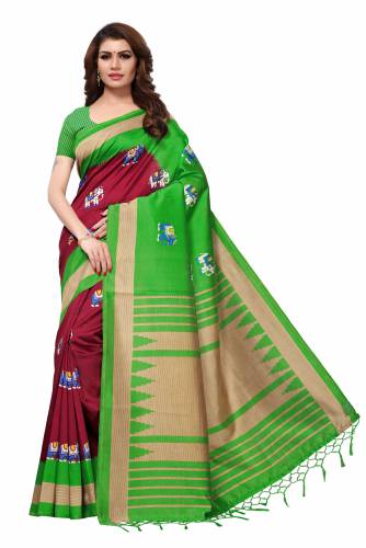 Saree Fabric : Mysore Silk Jhalor Saree, Saree Blouse Fabric : Cotton Silk , Saree Work : Printed Mysore Silk Saree, Saree Blouse Work :Self Designed Cotton Silk Blouse