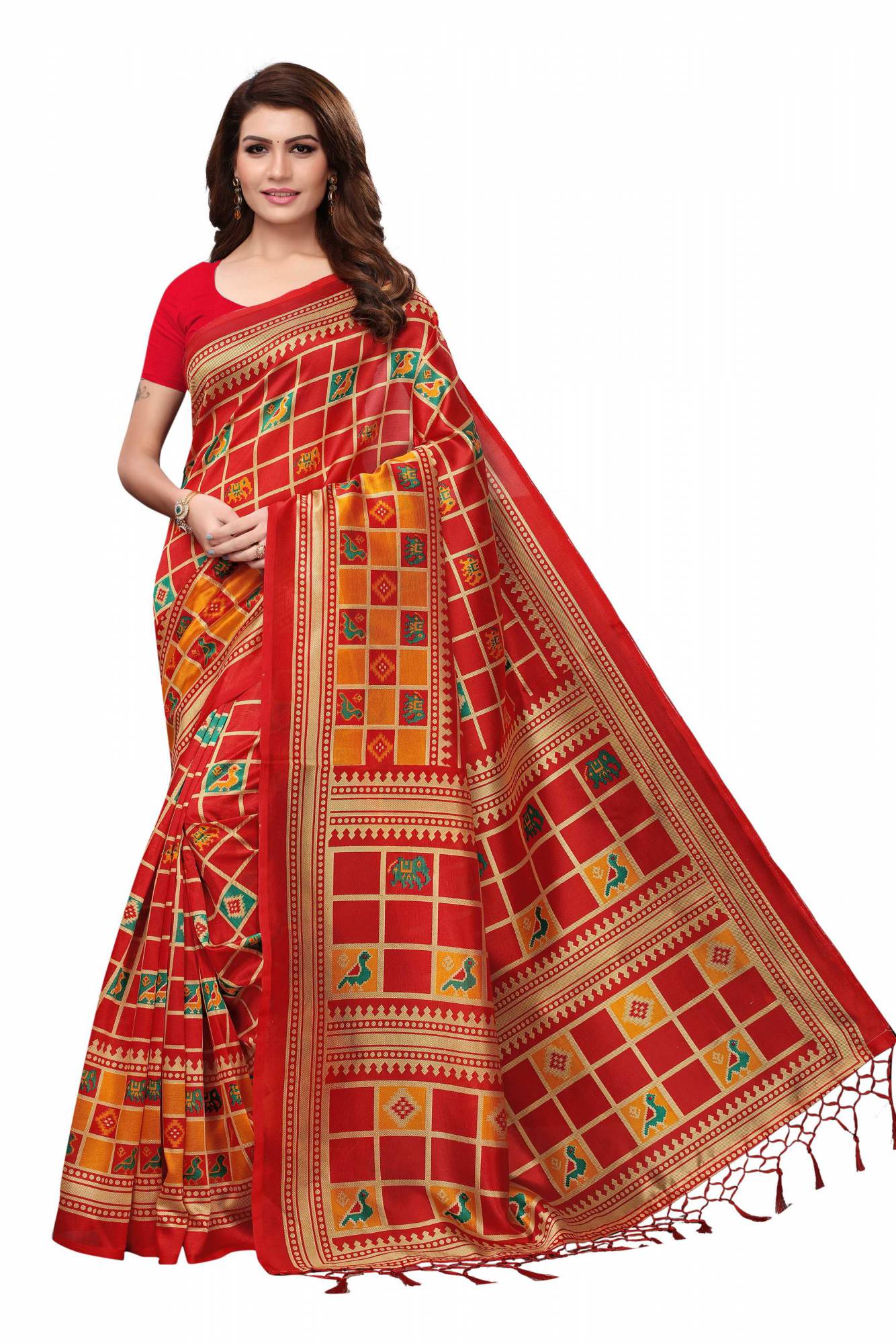 Saree Fabric : Mysore Silk Jhalor Saree, Saree Blouse Fabric : Cotton Silk , Saree Work : Printed Mysore Silk Saree, Saree Blouse Work :Self Designed Cotton Silk Blouse