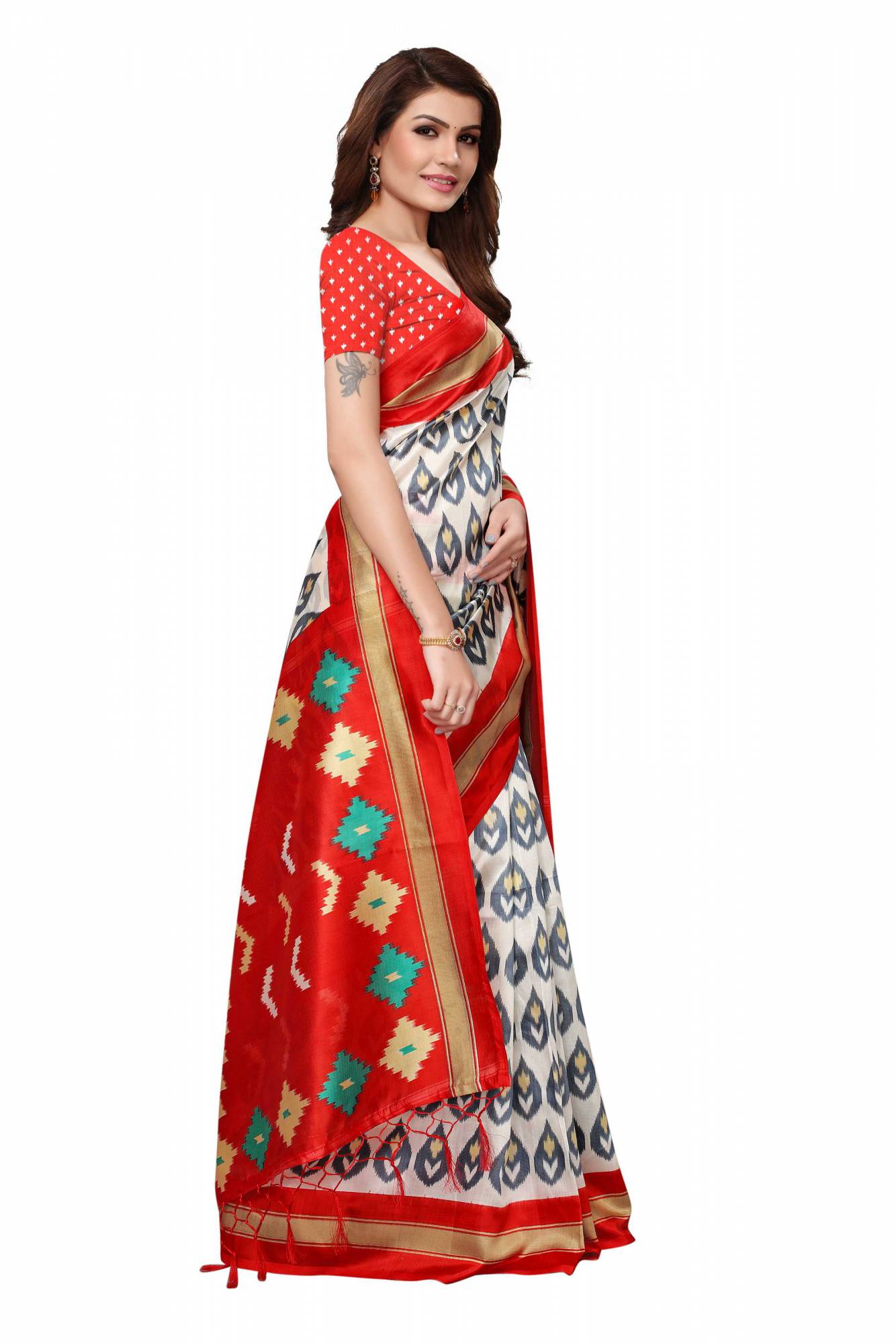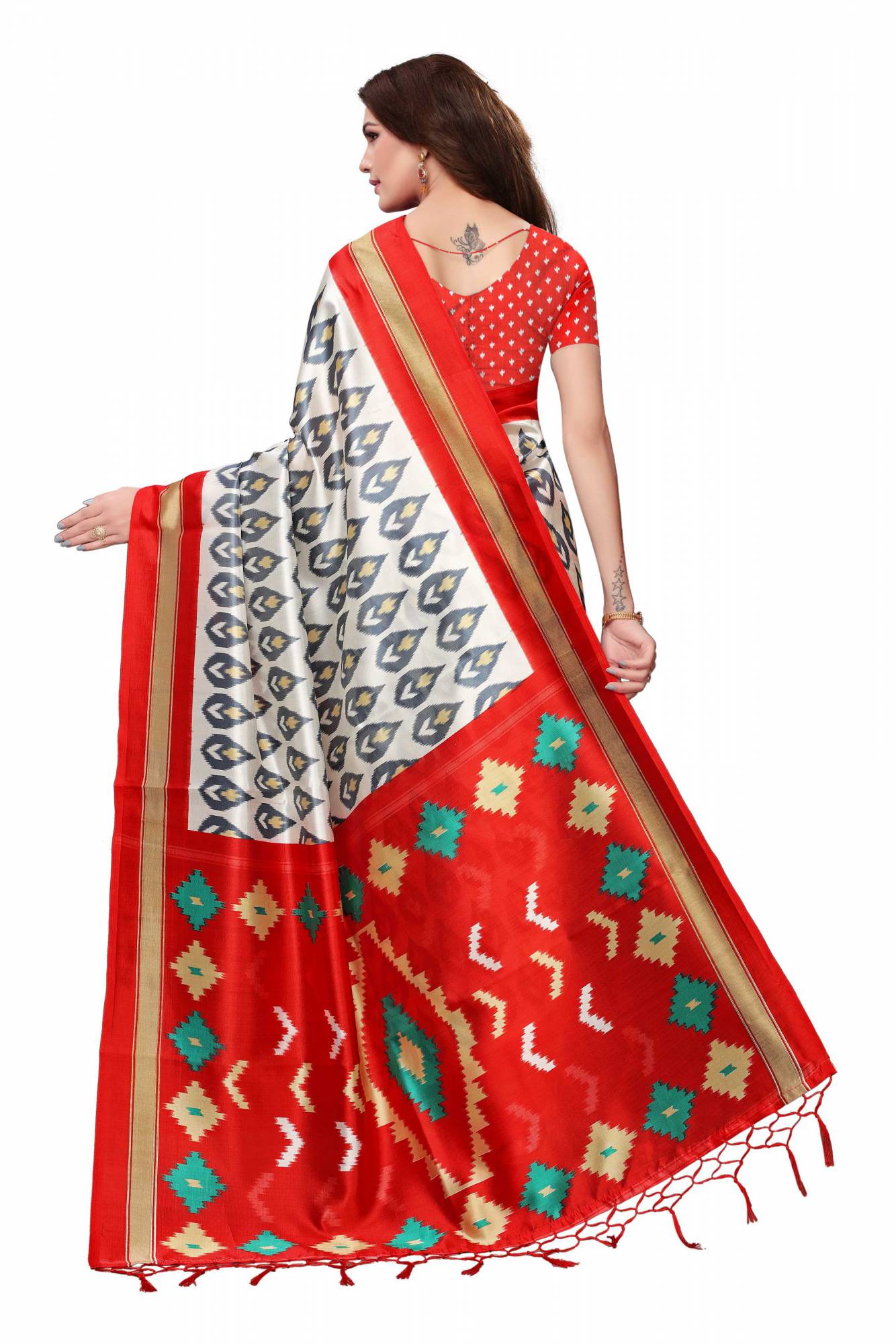 Saree Fabric : Mysore Silk Jhalor Saree, Saree Blouse Fabric : Cotton Silk , Saree Work : Printed Mysore Silk Saree, Saree Blouse Work :Self Designed Cotton Silk Blouse