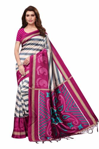 Saree Fabric : Mysore Silk Jhalor Saree, Saree Blouse Fabric : Cotton Silk , Saree Work : Printed Mysore Silk Saree, Saree Blouse Work :Self Designed Cotton Silk Blouse