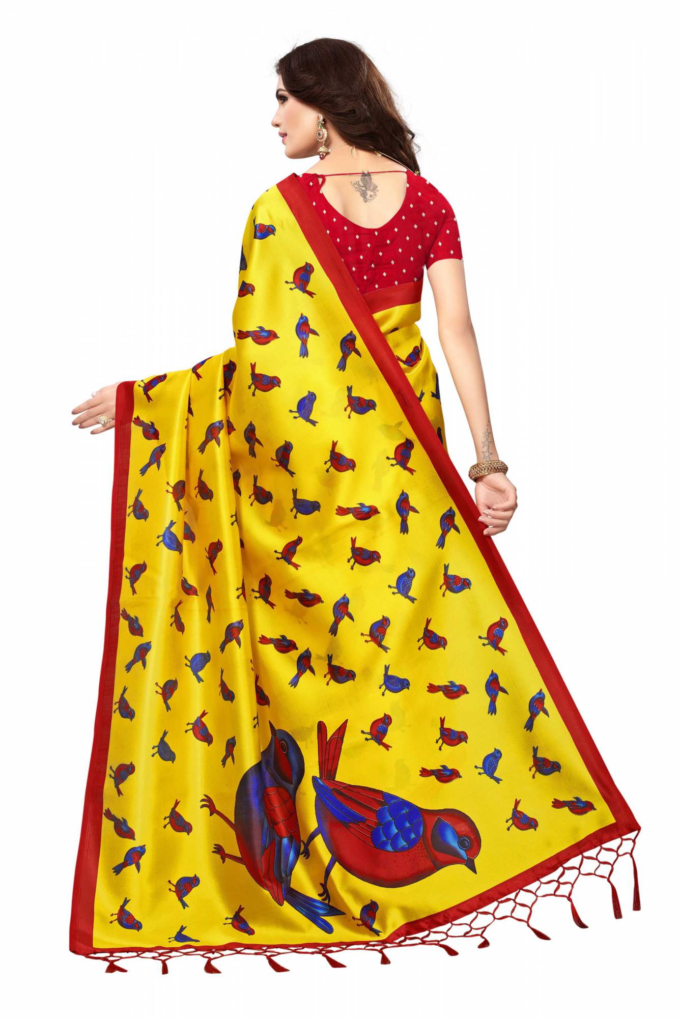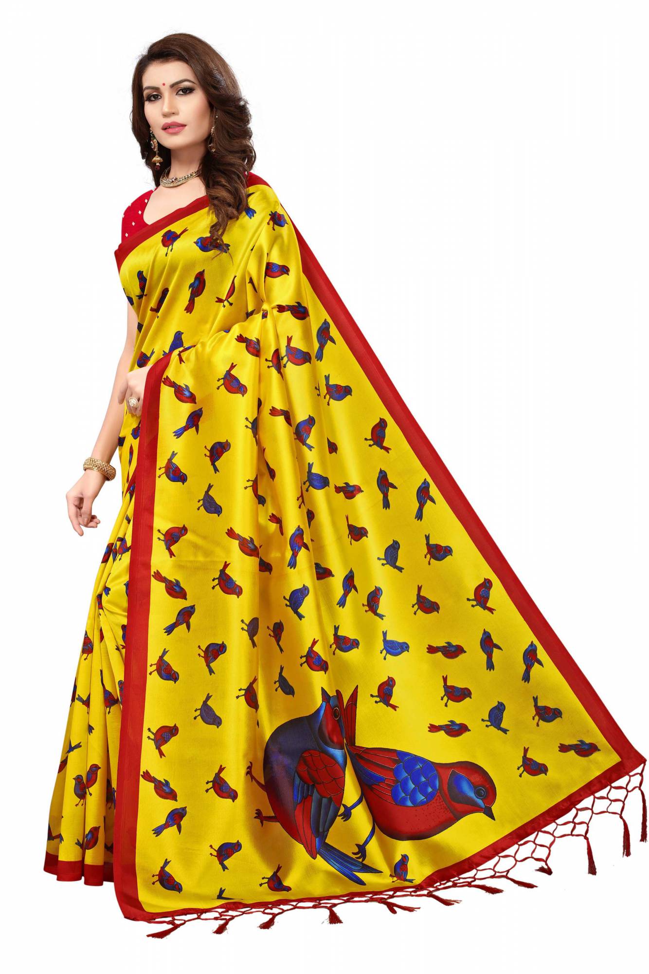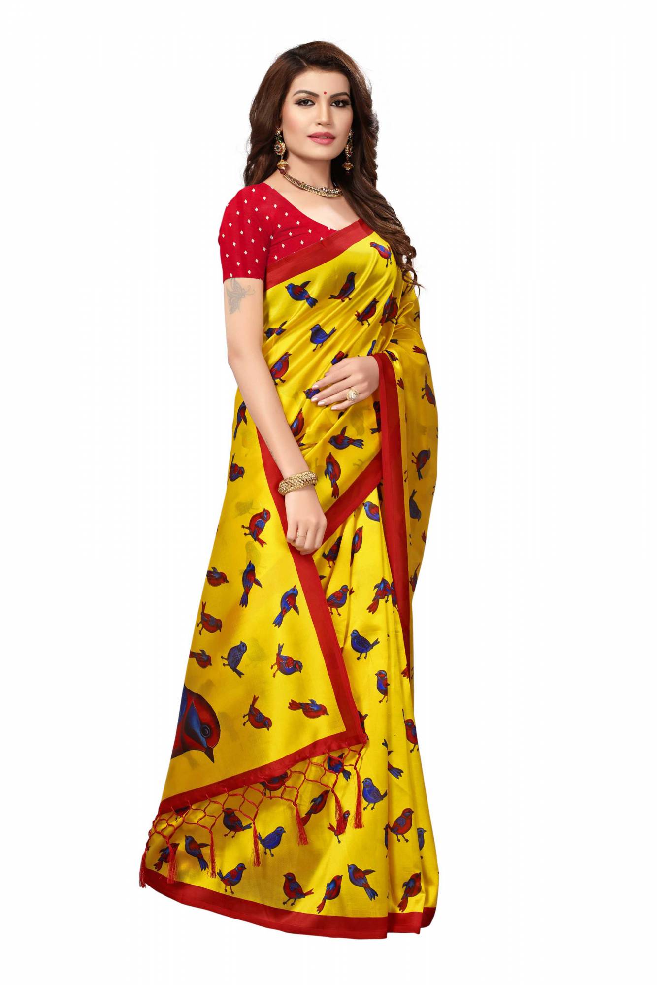Saree Fabric : Mysore Silk Jhalor Saree, Saree Blouse Fabric : Cotton Silk , Saree Work : Printed Mysore Silk Saree, Saree Blouse Work :Self Designed Cotton Silk Blouse