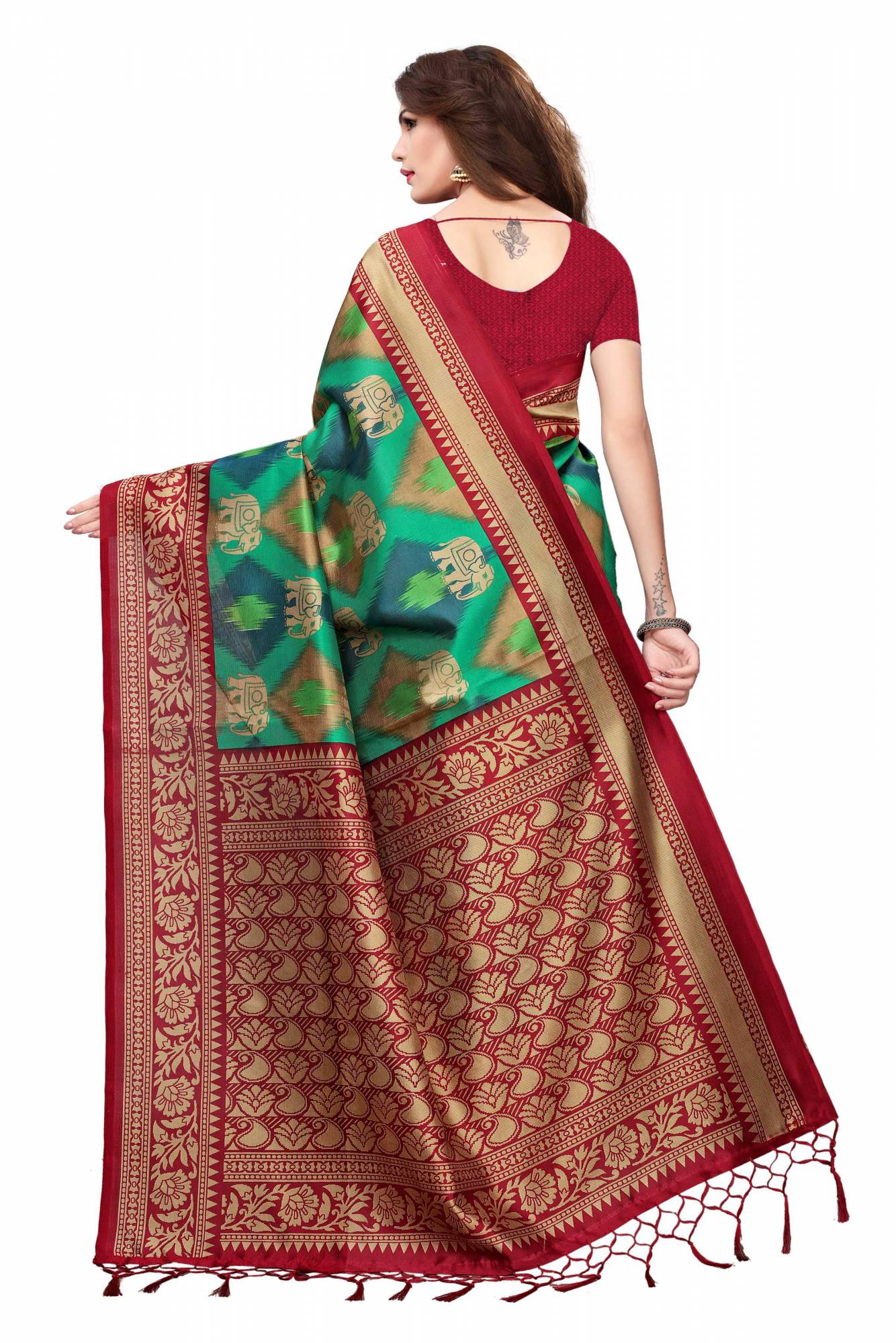 Saree Fabric : Mysore Silk Jhalor Saree, Saree Blouse Fabric : Cotton Silk , Saree Work : Printed Mysore Silk Saree, Saree Blouse Work :Self Designed Cotton Silk Blouse