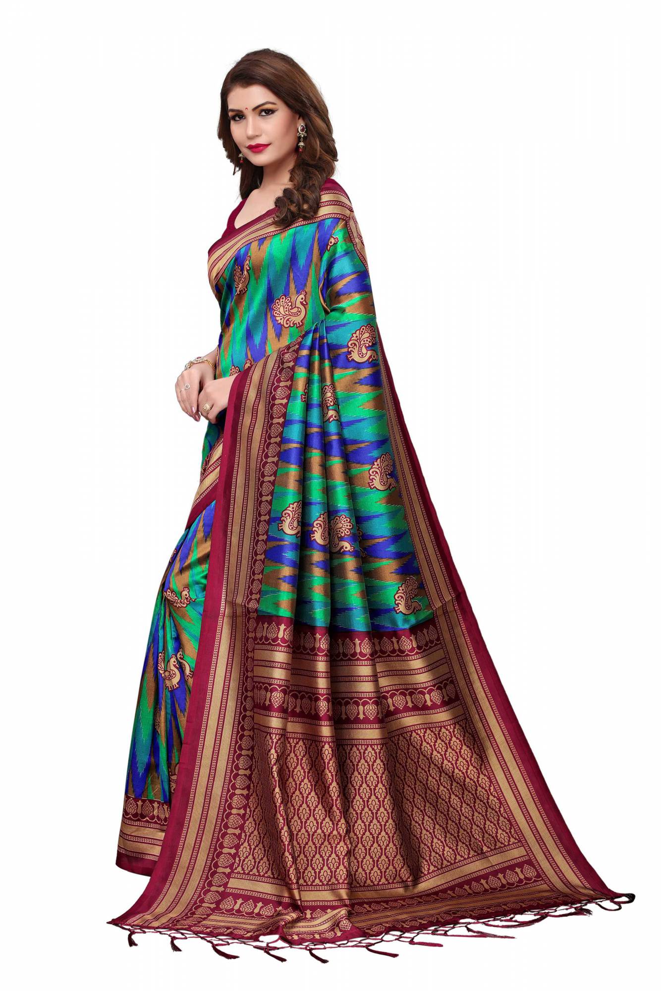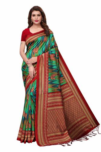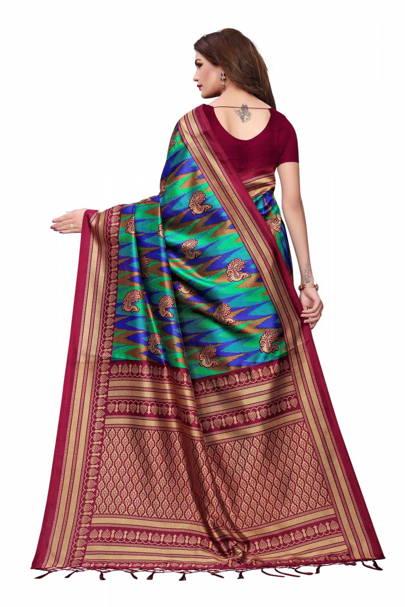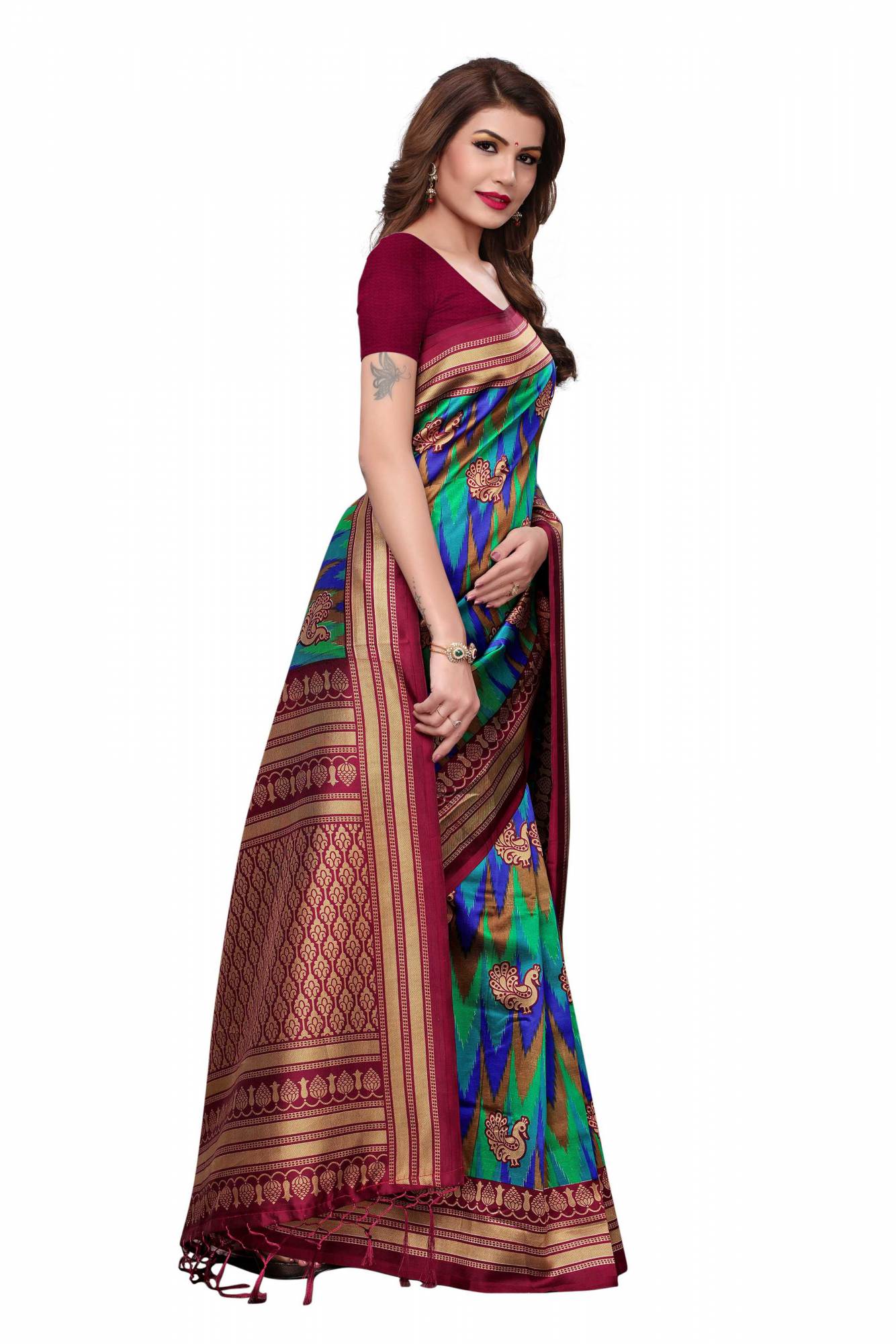 Saree Fabric : Mysore silk Jhalor saree, Saree Blouse Fabric : Cotton silk , Saree Work : Printed Mysore Silk Saree, Saree Blouse Work :Self designed cotton silk blouse