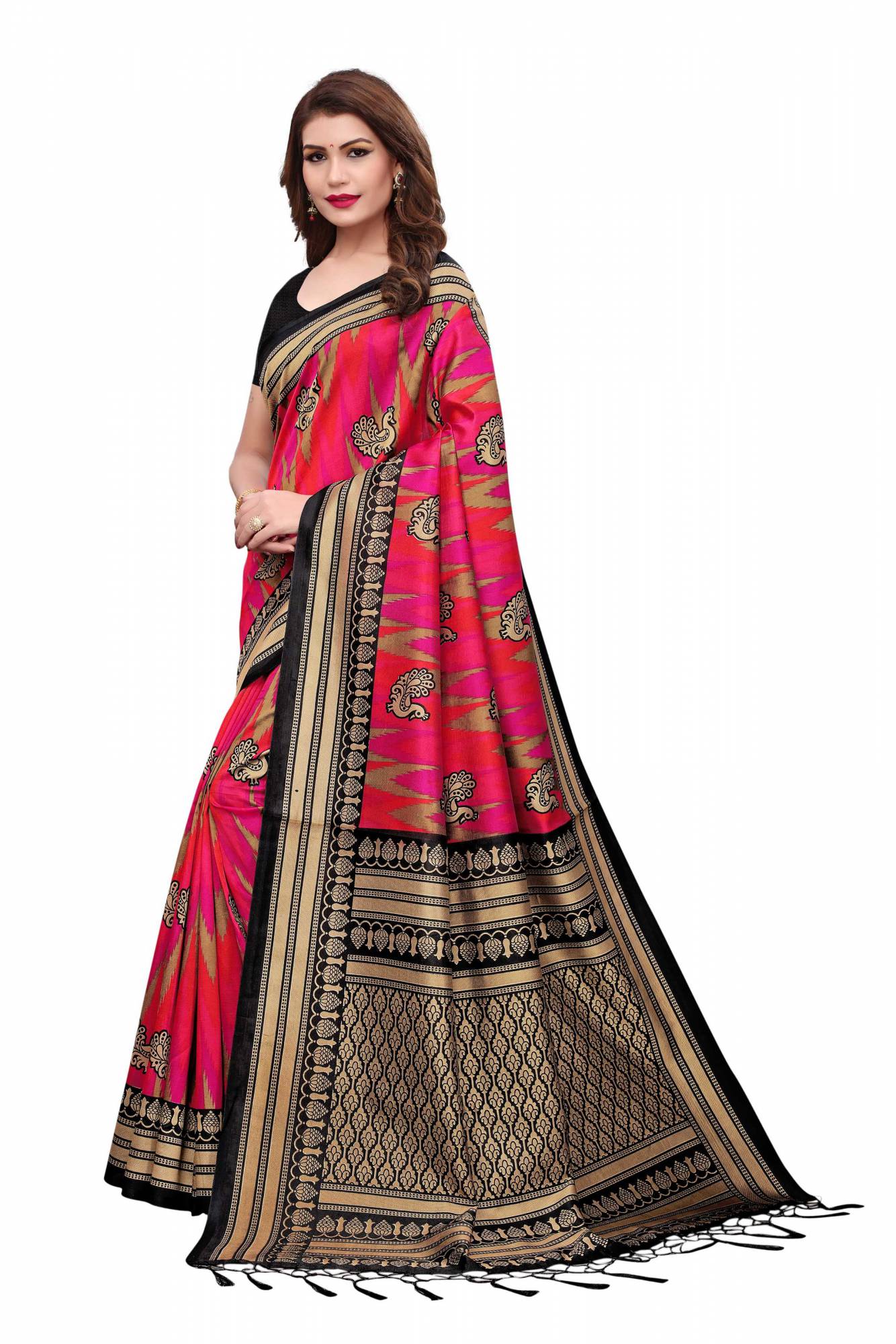 Saree Fabric : Mysore silk Jhalor saree, Saree Blouse Fabric : Cotton silk , Saree Work : Printed Mysore Silk Saree, Saree Blouse Work :Self designed cotton silk blouse