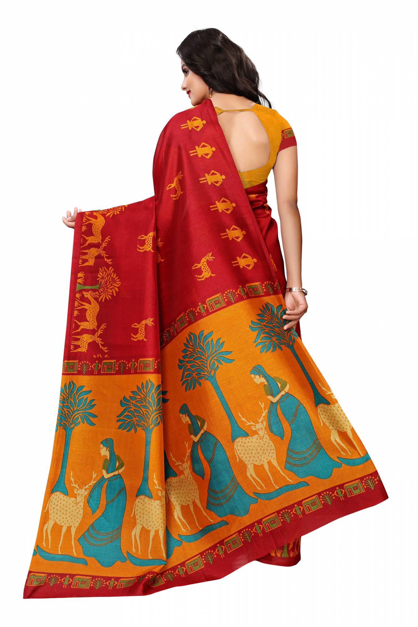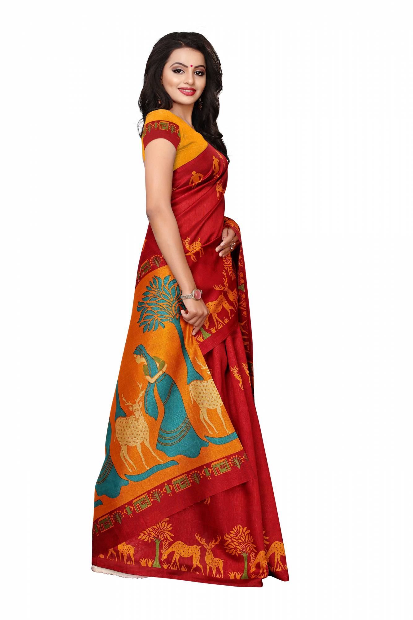 Saree Fabric : Mysore Silk Saree, Saree Blouse Fabric : Mysore Silk , Saree Work : Animal Print Mysore Silk Saree, Saree Blouse Work : Plain Mysore Silk Blouse