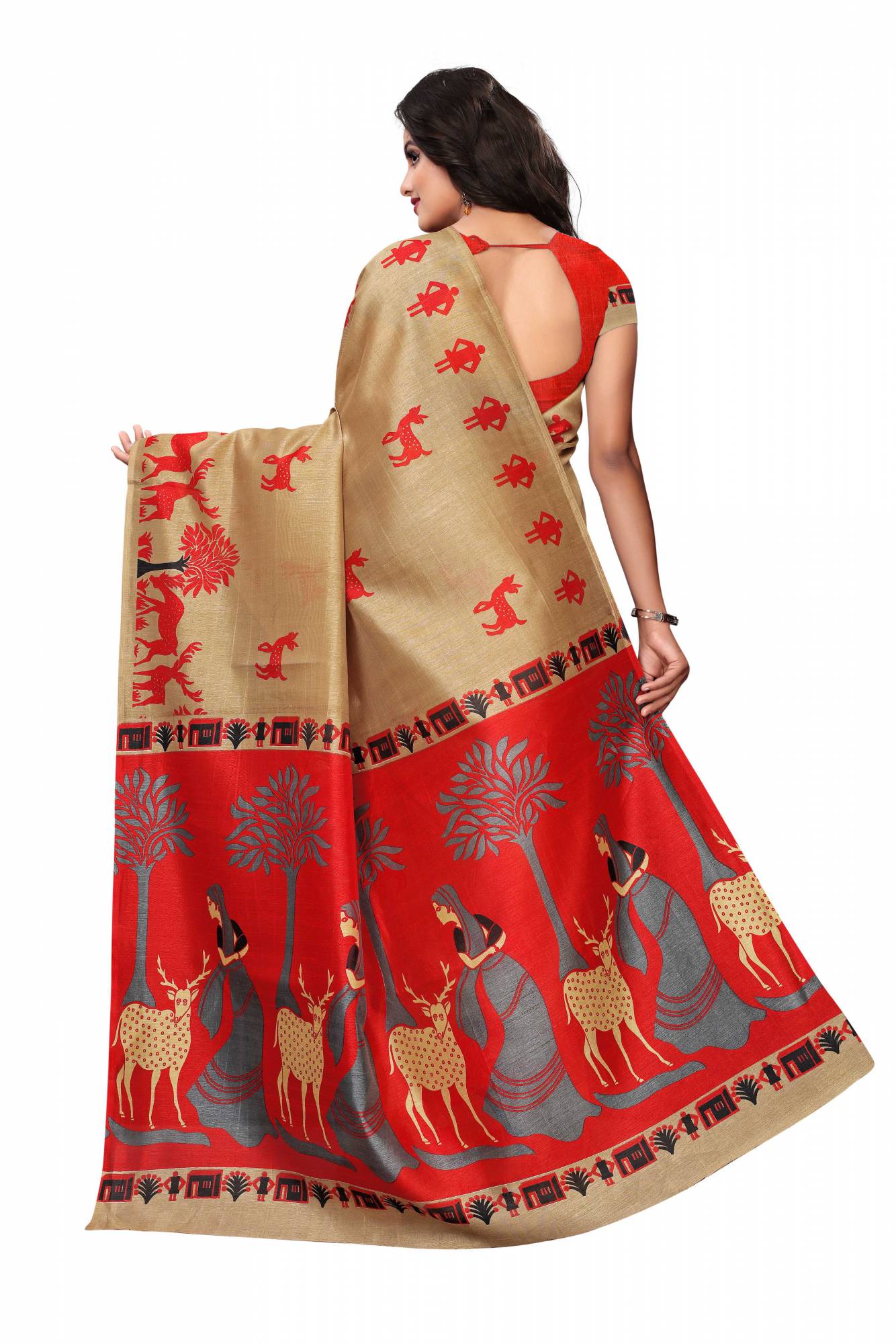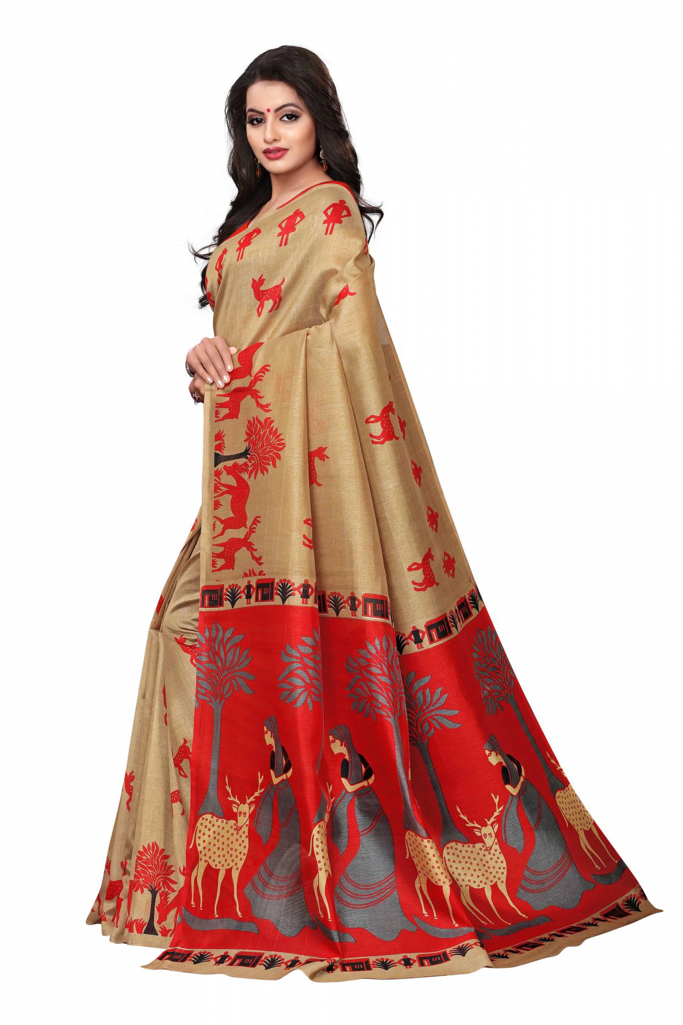 Saree Fabric : Mysore Silk Saree, Saree Blouse Fabric : Mysore Silk , Saree Work : Animal Print Mysore Silk Saree, Saree Blouse Work : Plain Mysore Silk Blouse