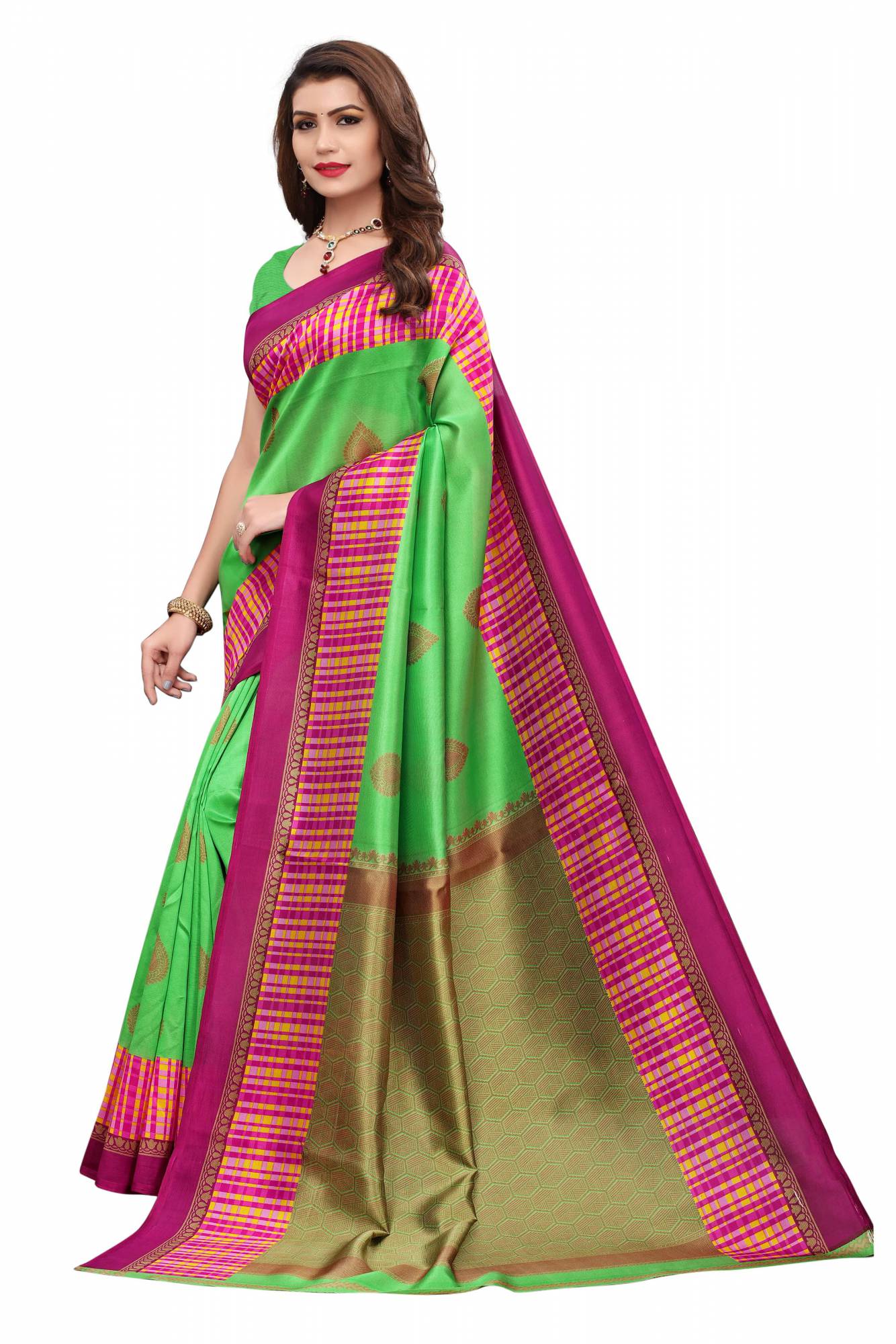Saree Fabric : Mysore Silk Saree, Saree Blouse Fabric : Mysore Silk , Saree Work : Designed Mysore Silk Saree, Saree Blouse Work : Floral Design Mysore Silk Blouse