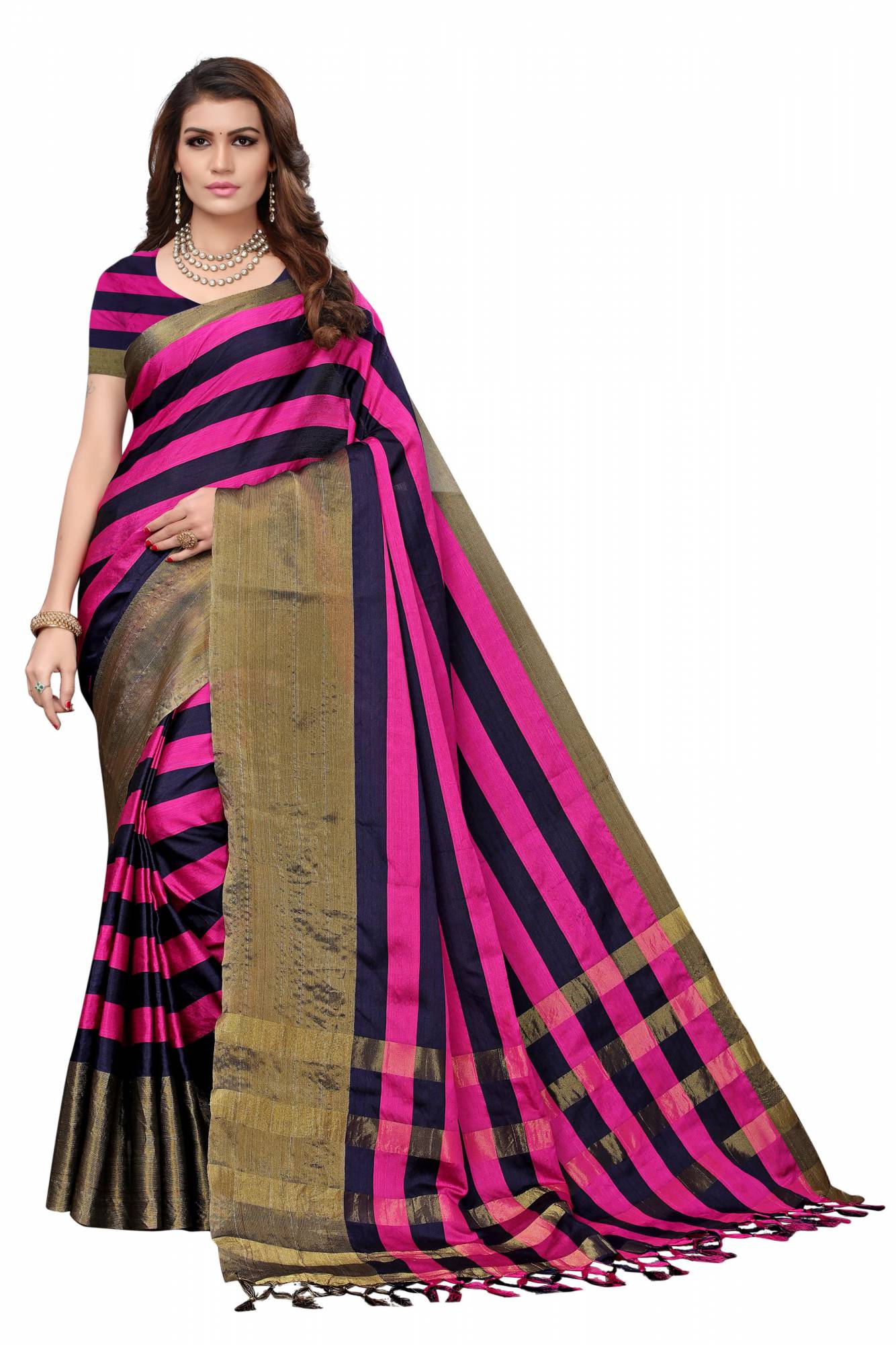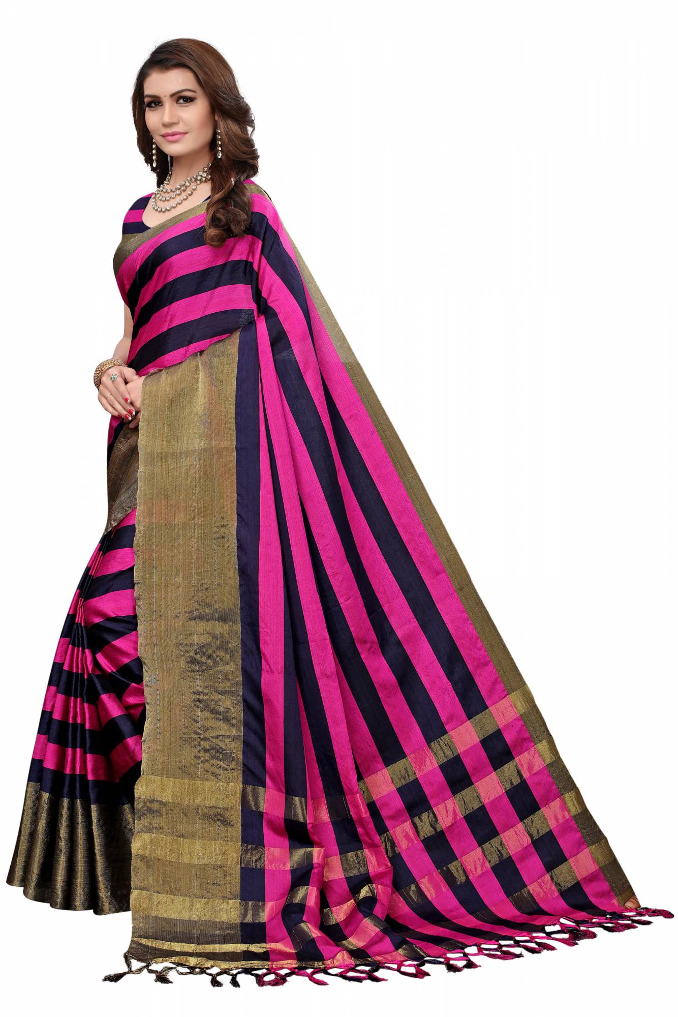 Saree Fabric : Cotton Zari Saree, Saree Blouse Fabric : Cotton Saree, Saree Work : Plain Bordered Cotton Silk Saree, Saree Blouse Work : Plain Zari