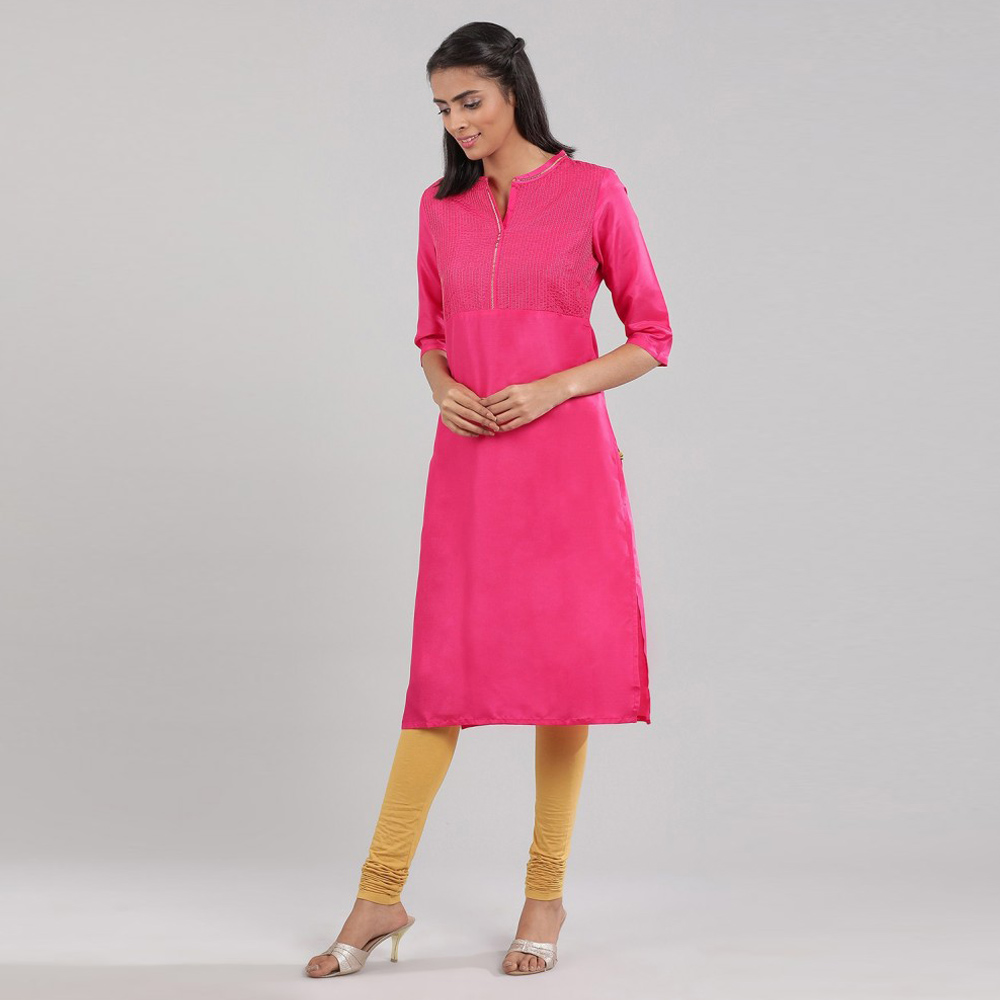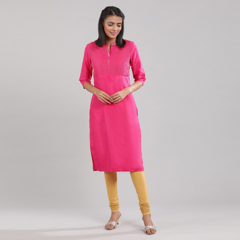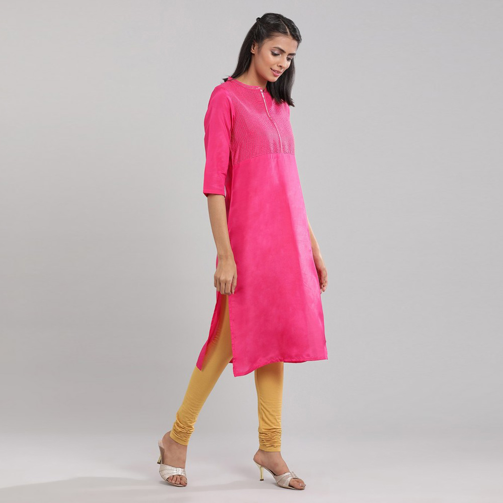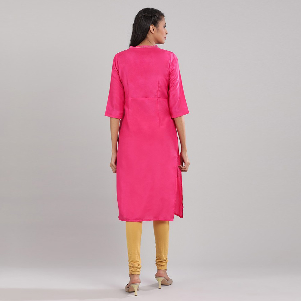 Aurelia Women Embellished Polycotton Straight Kurta  (Pink)