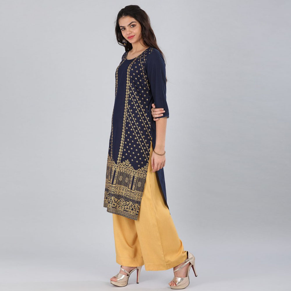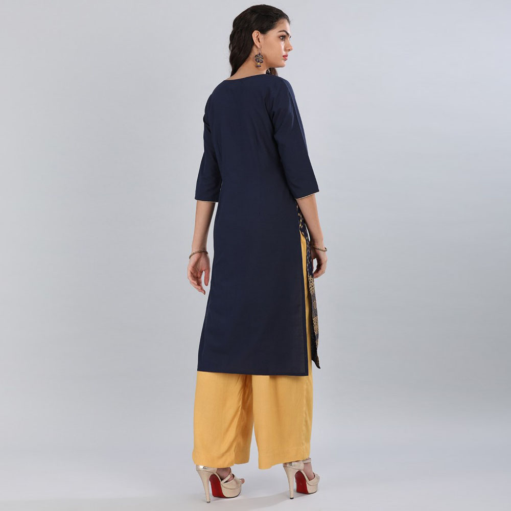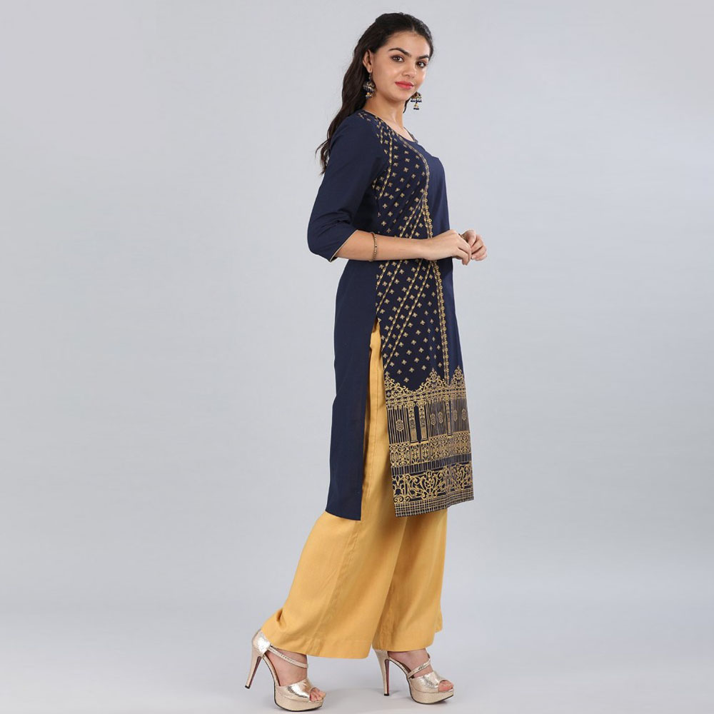 Aurelia Women Printed Cotton Blend Straight Kurta  (Blue)