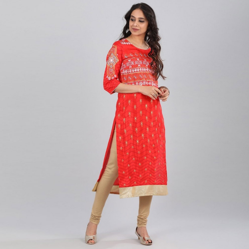 Aurelia Women Printed Cotton Viscose Blend Kurta  (Red)