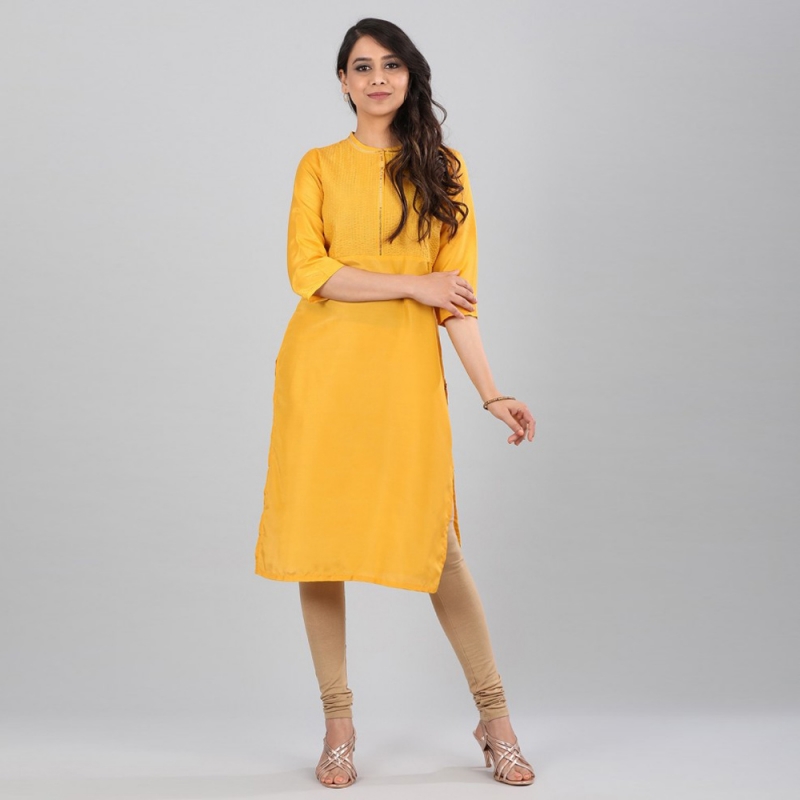 Aurelia Women Solid Polycotton Straight Kurta  (Yellow)