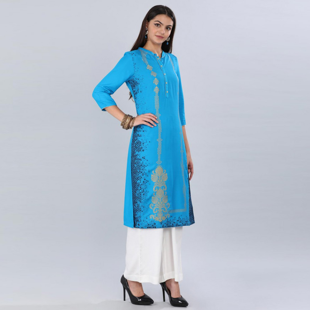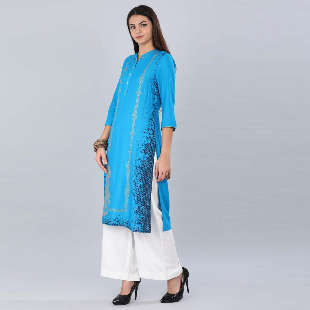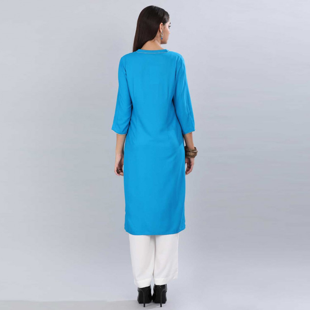 Aurelia Women Solid Viscose Blend Straight Kurta  (Blue)