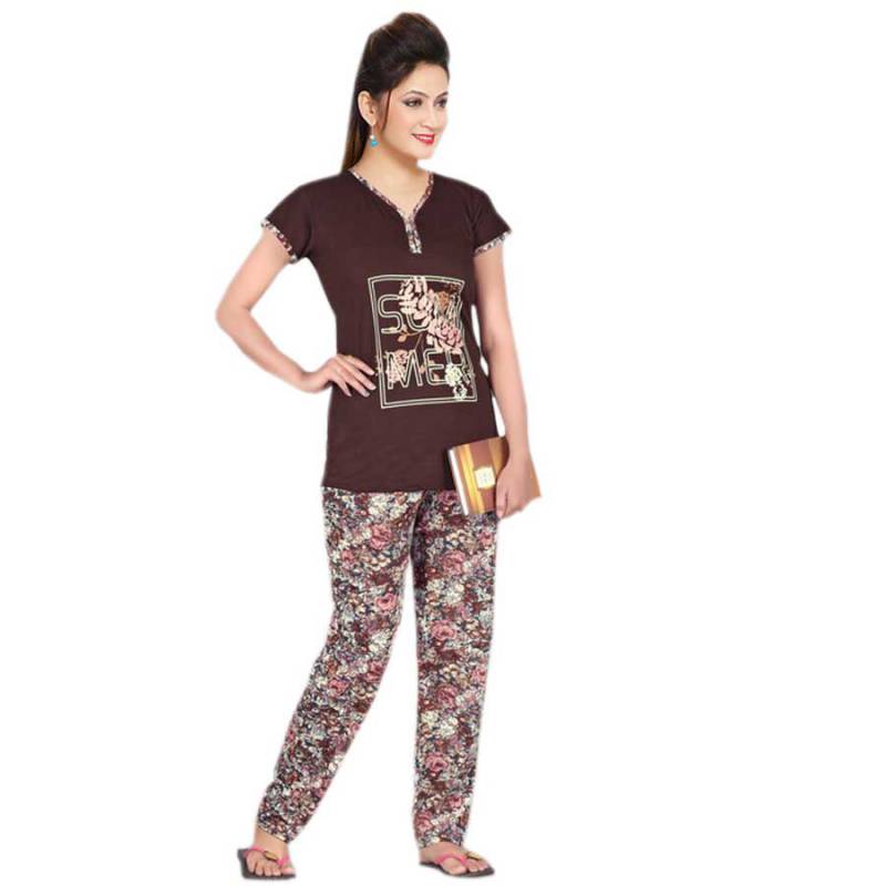 Stay Comfortable All Day Long In This Cute Night Wear Set, Whether Its Lounging Around Or Casual Wear Use. 1.Cotton Fabric 2.Cap Sleeve 3.Printed Pattern 4.Top & Pyjama Set