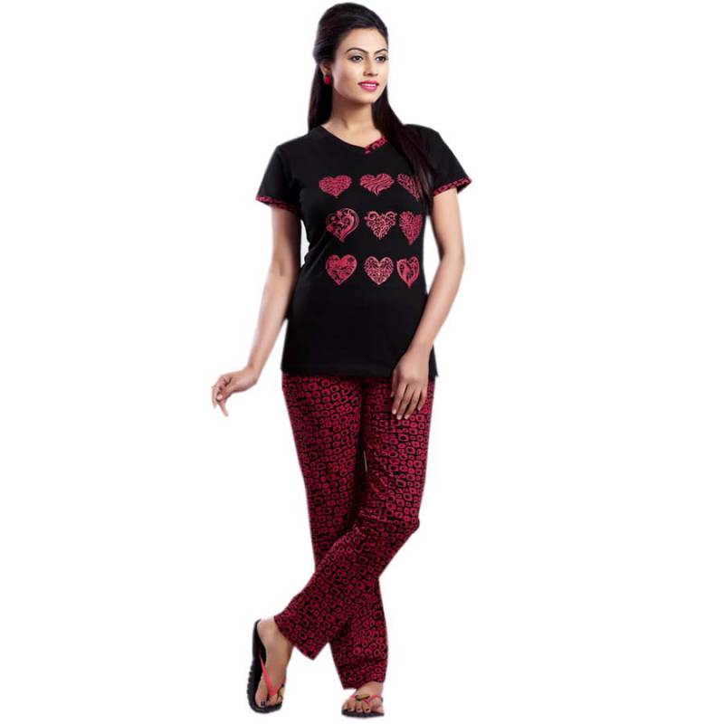 Stay Comfortable All Day Long In This Cute Night Wear Set, Whether Its Lounging Around Or Casual Wear Use. 1.Cotton Fabric 2.Cap Sleeve 3.Printed Pattern 4.Top & Pyjama Set
