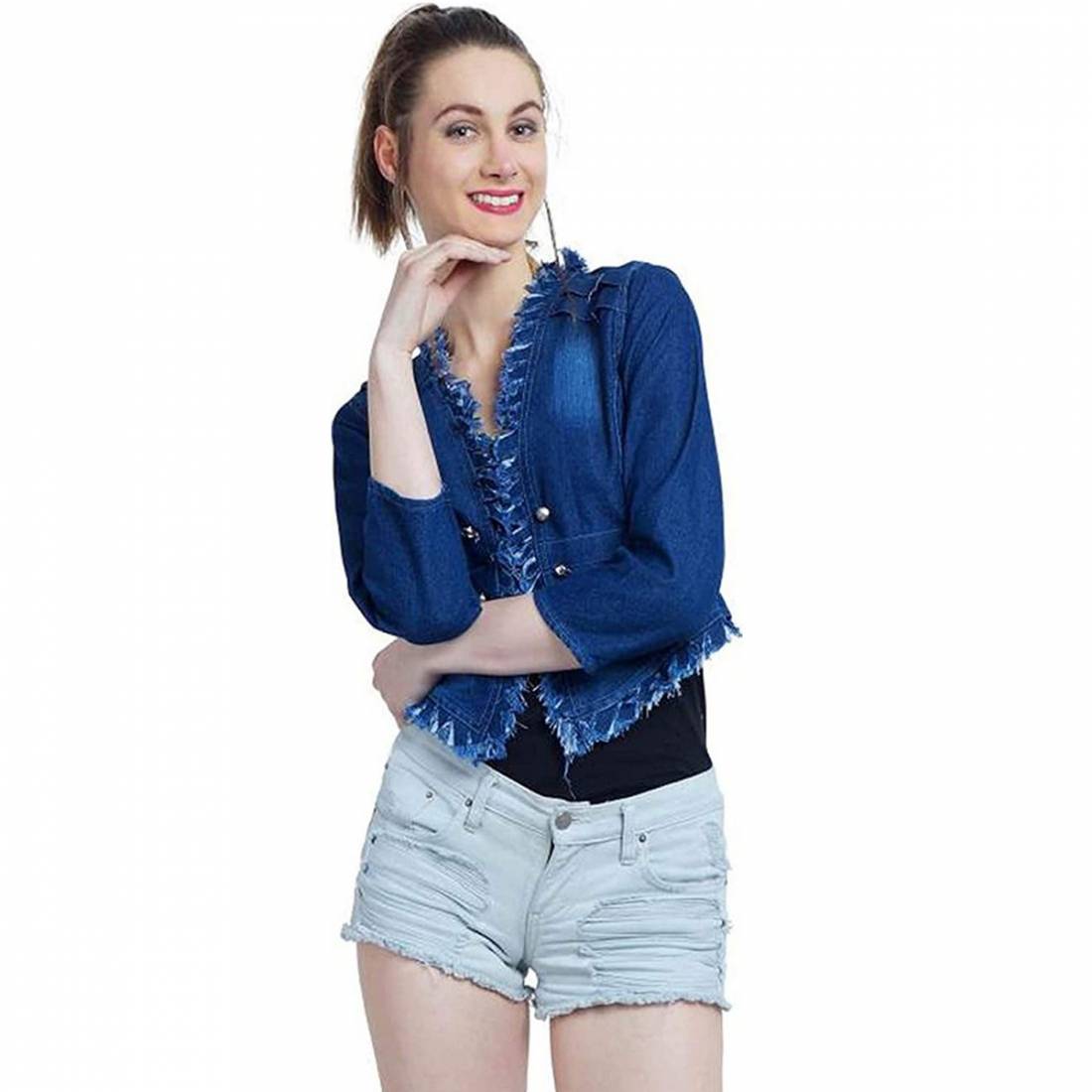 Full Sleeve Solid Women Jacket (Dark Blue)