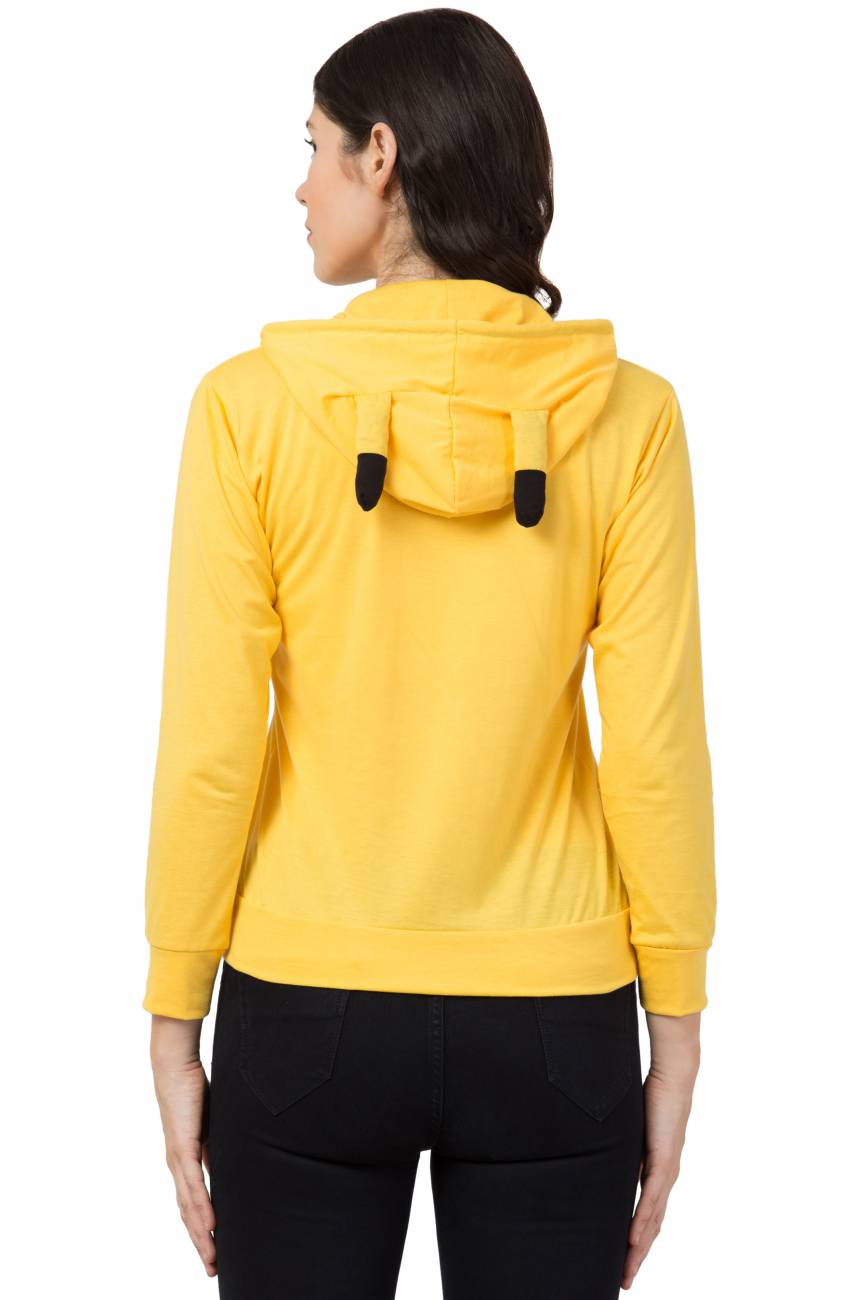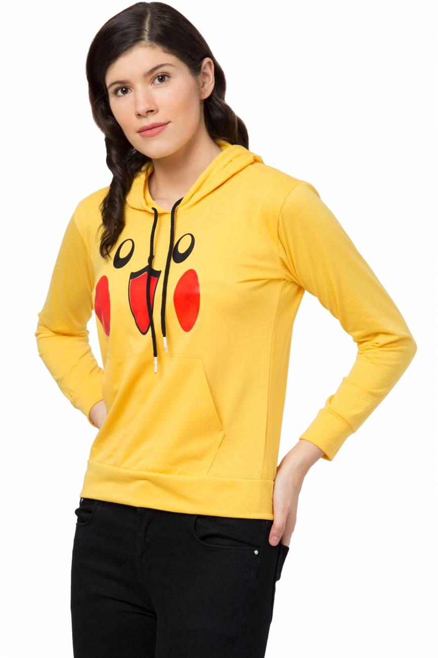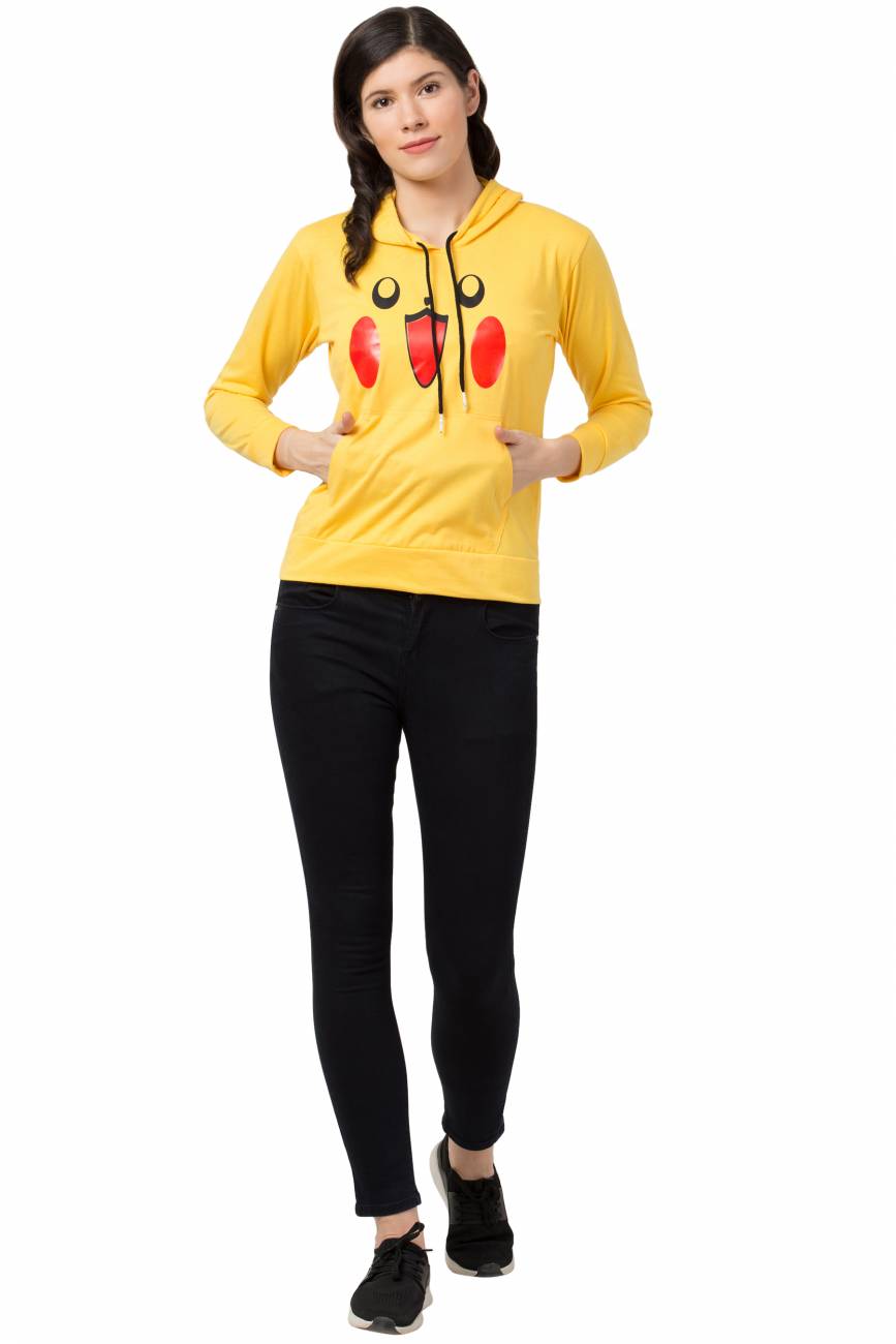 Haasimart Women Hoodies T-Shirt With Two Pockets, Full Sleeve, Cartoon Printed InYellow Colour