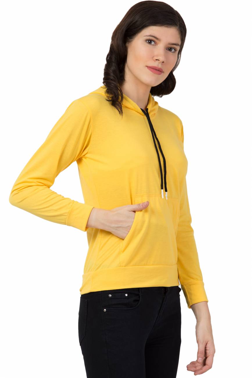 Haasimart Women Hoodies T-Shirt With Two Pockets, Full Sleeve, Yellow Colur