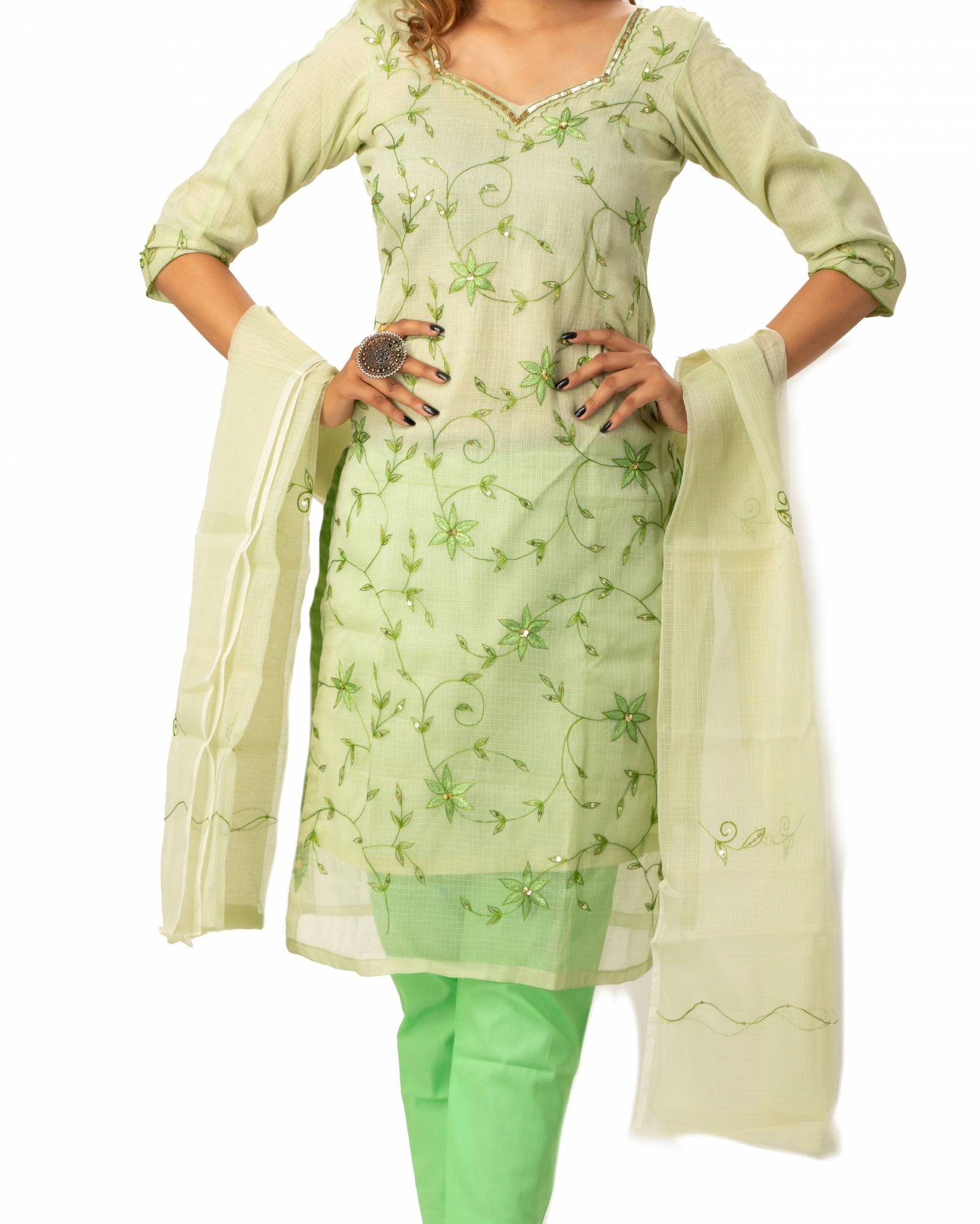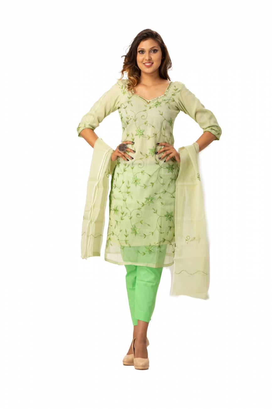 Madhulika brings to you this dress material which is made from Kota Doria and. This fabric has been designed keeping in mind the latest trends in an ethnic and casual fashion. The fabric combines ethnic with the fashion of today and makes you stand out among others when you adorn it.
