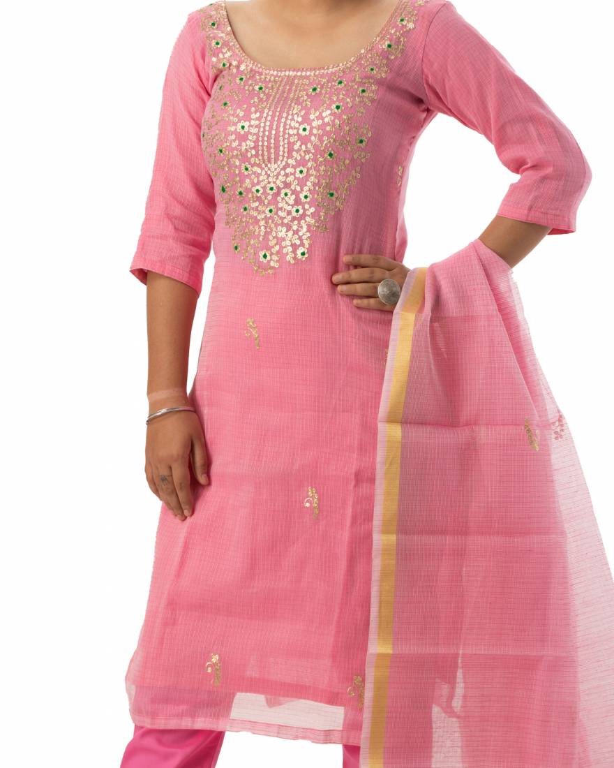 Madhulika brings to you this dress material which is made from Kota Doria and. This fabric has been designed keeping in mind the latest trends in an ethnic and casual fashion. The fabric combines ethnic with the fashion of today and makes you stand out among others when you adorn it.