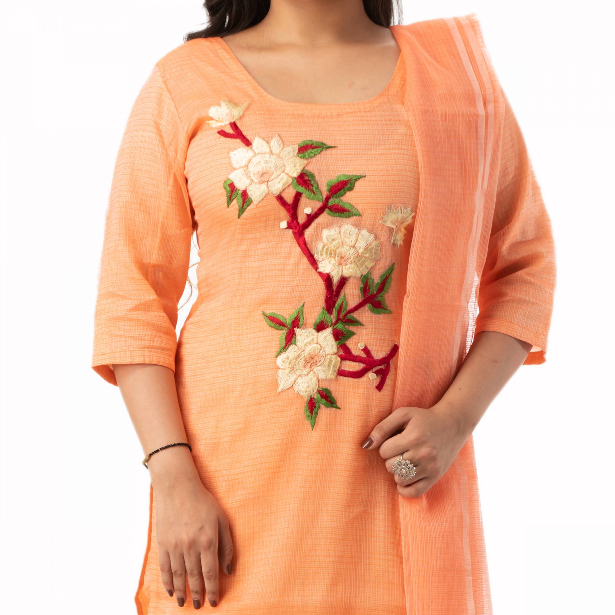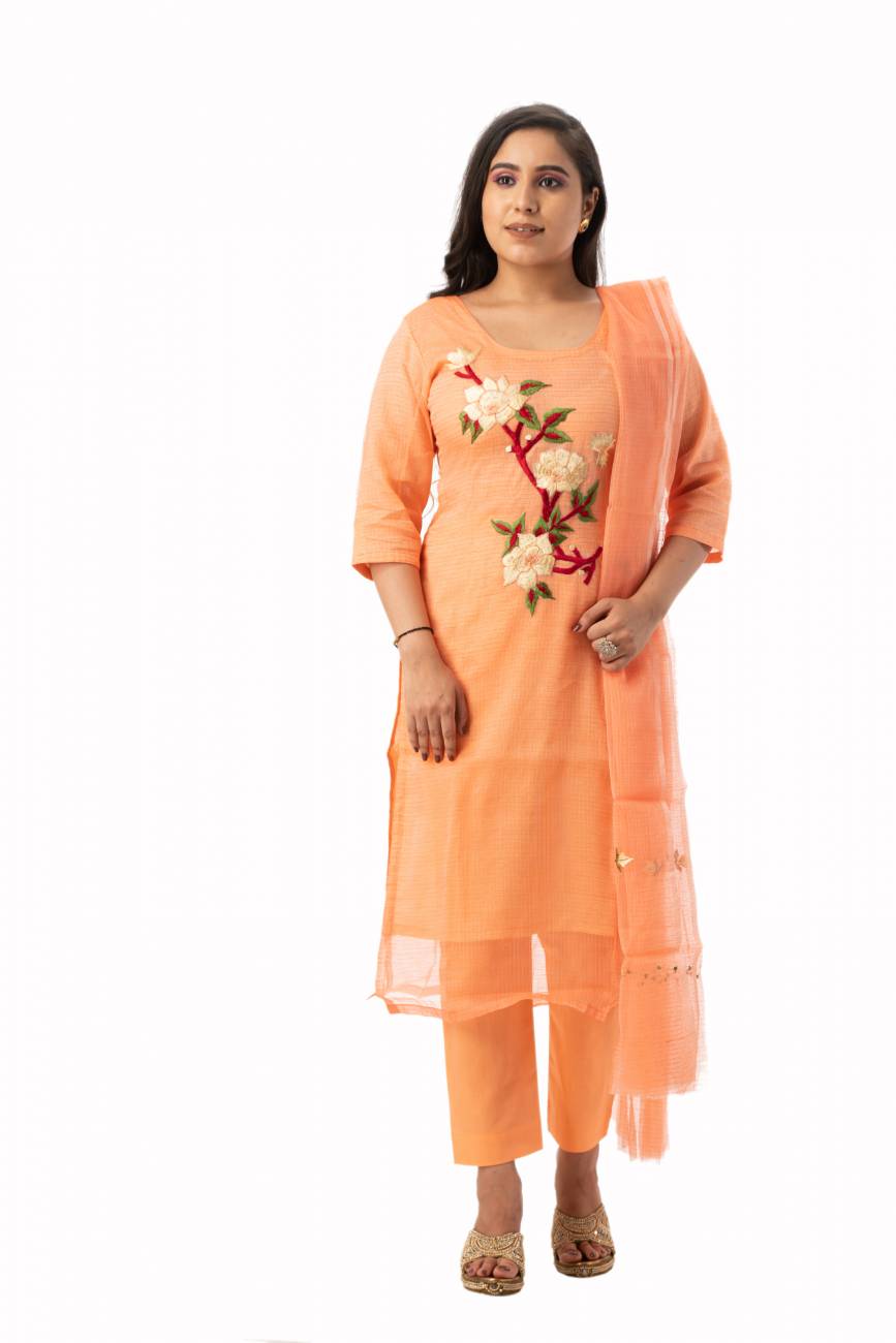 Madhulika brings to you this dress material which is made from Kota Doria and. This fabric has been designed keeping in mind the latest trends in an ethnic and casual fashion. The fabric combines ethnic with the fashion of today and makes you stand out among others when you adorn it.