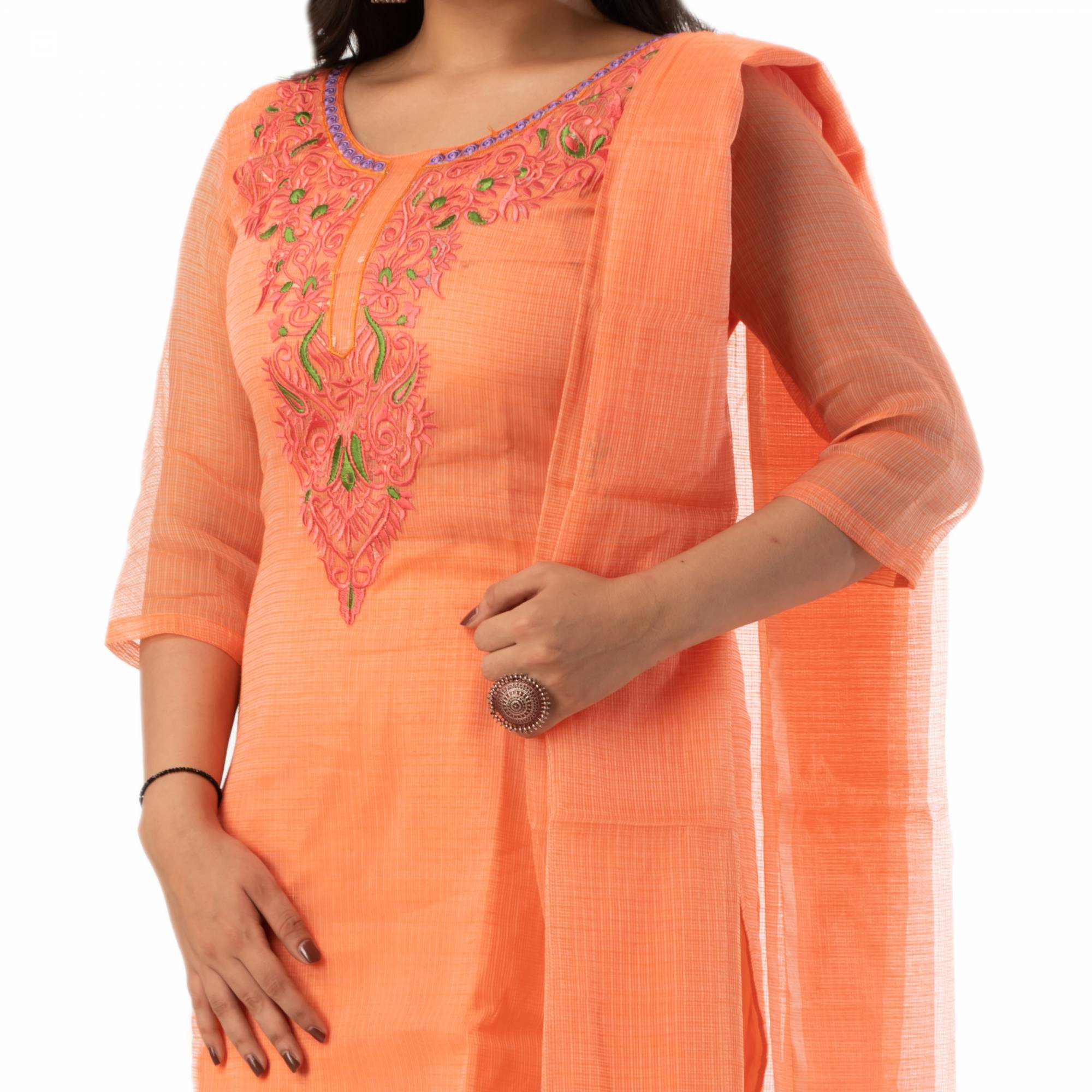 Madhulika brings to you this dress material which is made from Kota Doria and. This fabric has been designed keeping in mind the latest trends in an ethnic and casual fashion. The fabric combines ethnic with the fashion of today and makes you stand out among others when you adorn it.