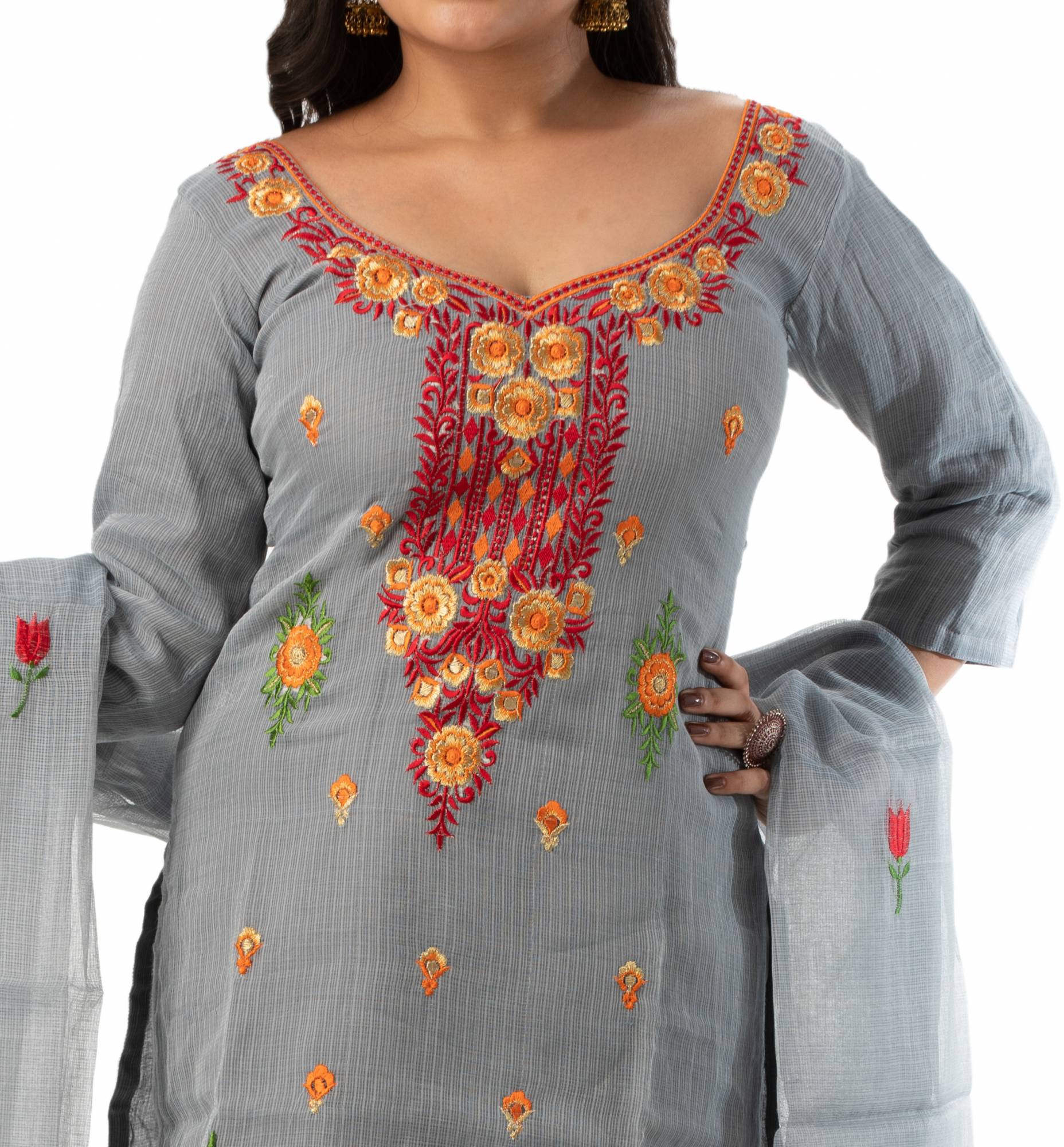 Madhulika brings to you this dress material which is made from Kota Doria and. This fabric has been designed keeping in mind the latest trends in an ethnic and casual fashion. The fabric combines ethnic with the fashion of today and makes you stand out among others when you adorn it.
