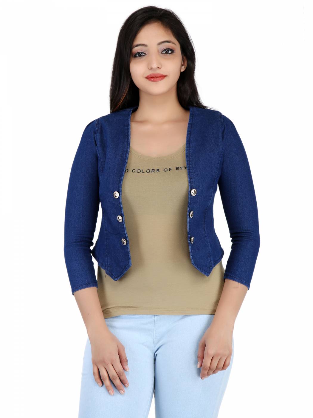Romile's party wear denim jacket best for slim fit women wear on denim jeans best matching combination. buy one size larger that size you want for example your size M then buy L size.