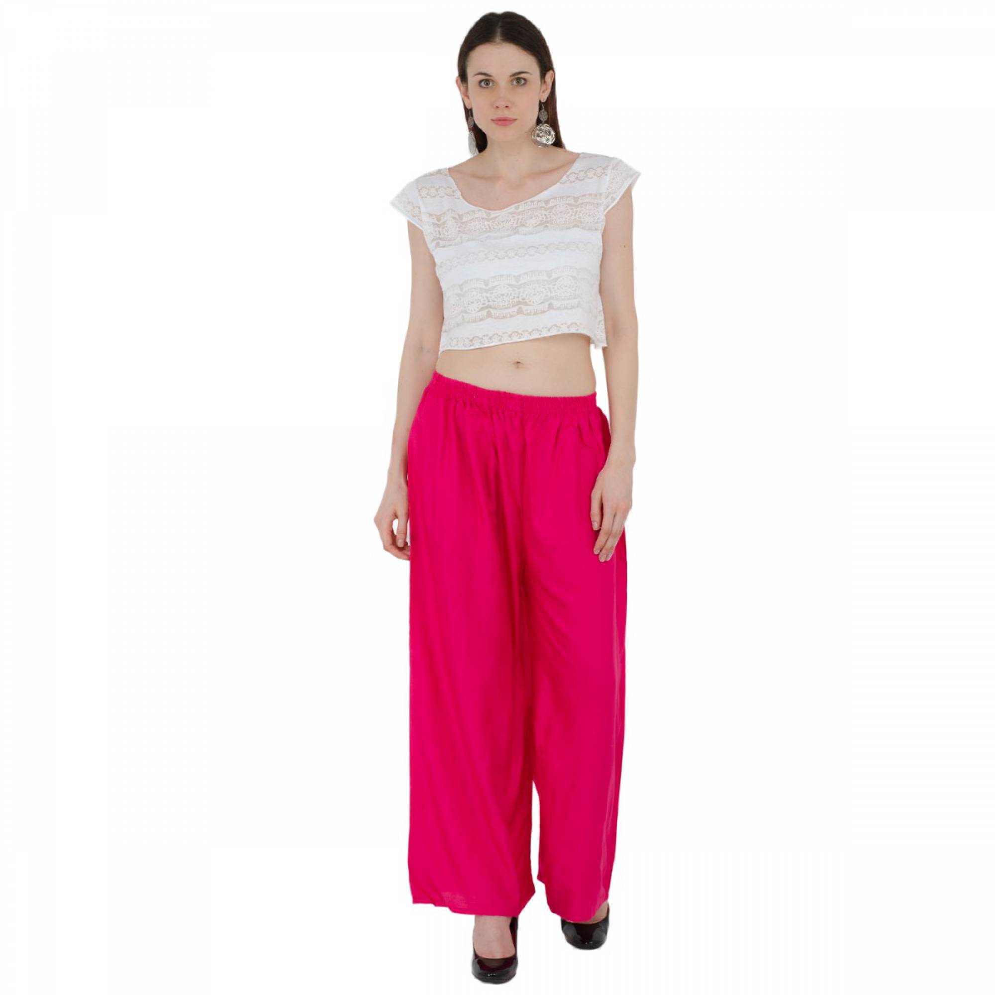 SIVYATI Rayon Regular Fit Solid Pink Palazzo Pant For Women