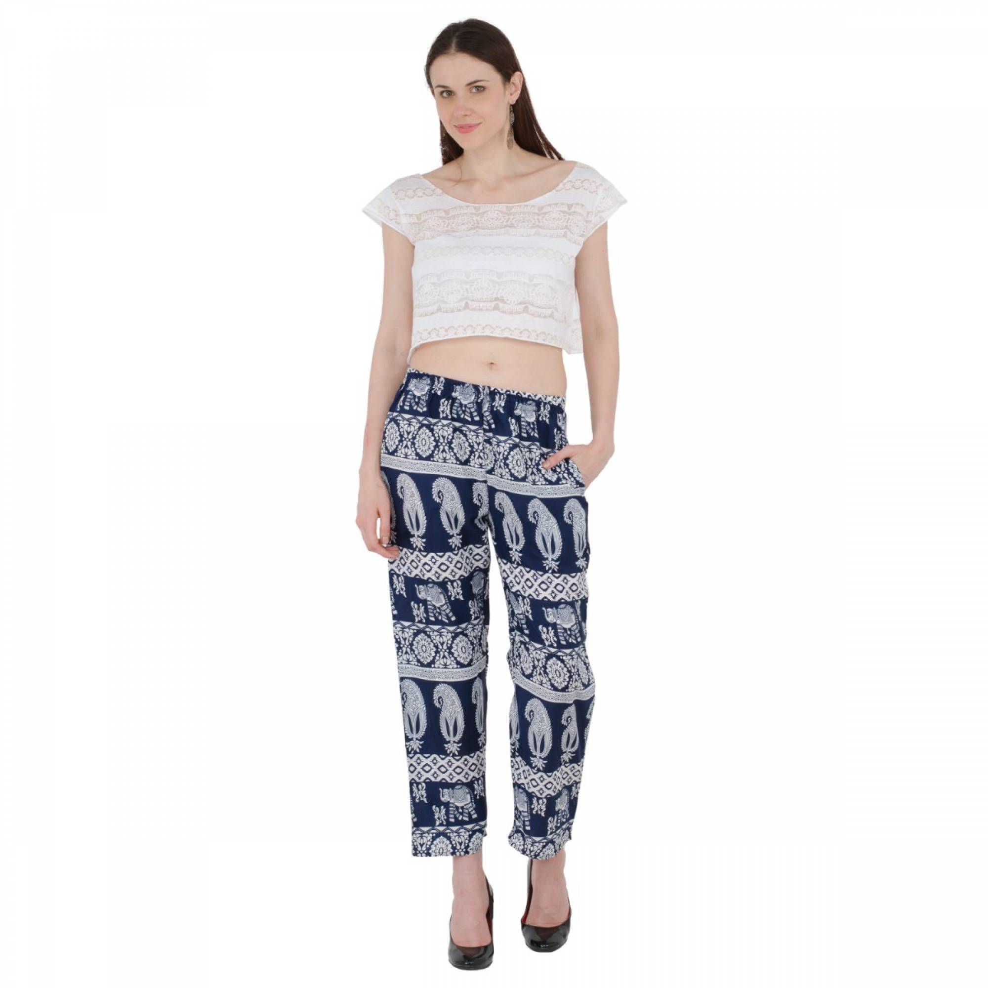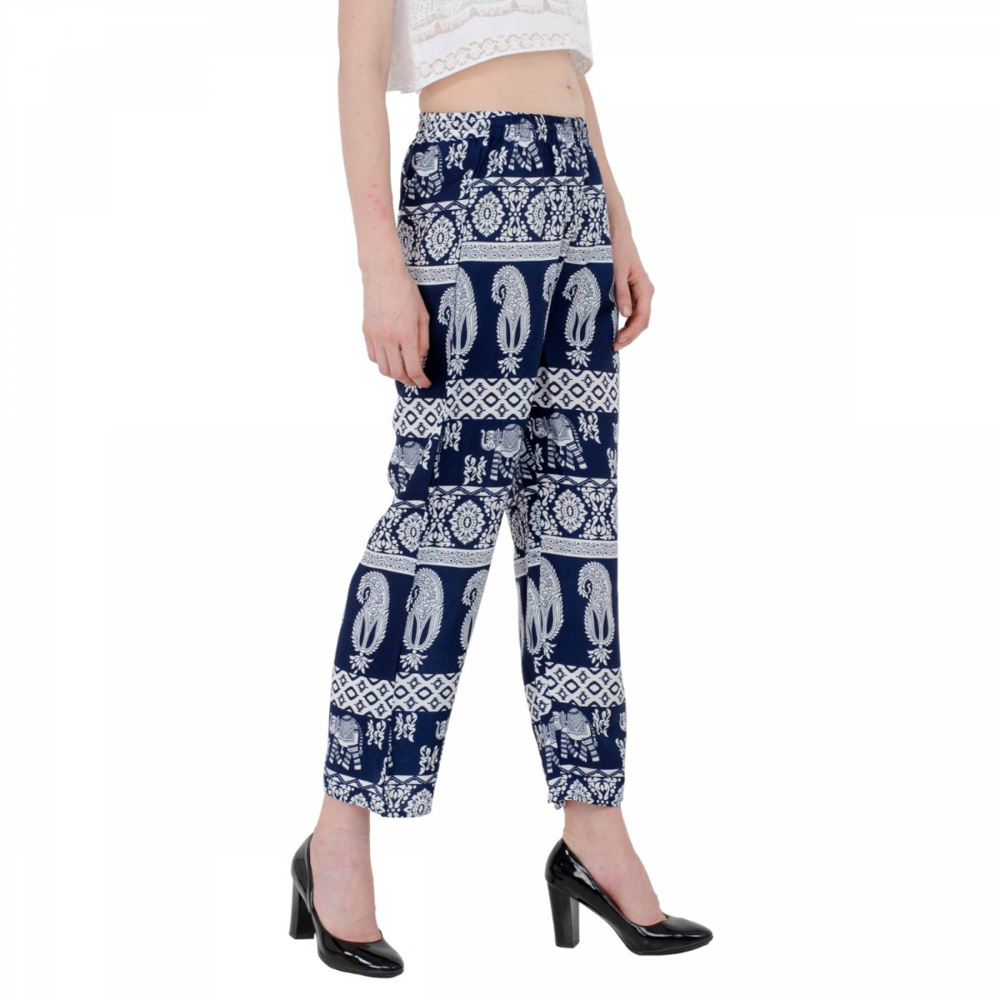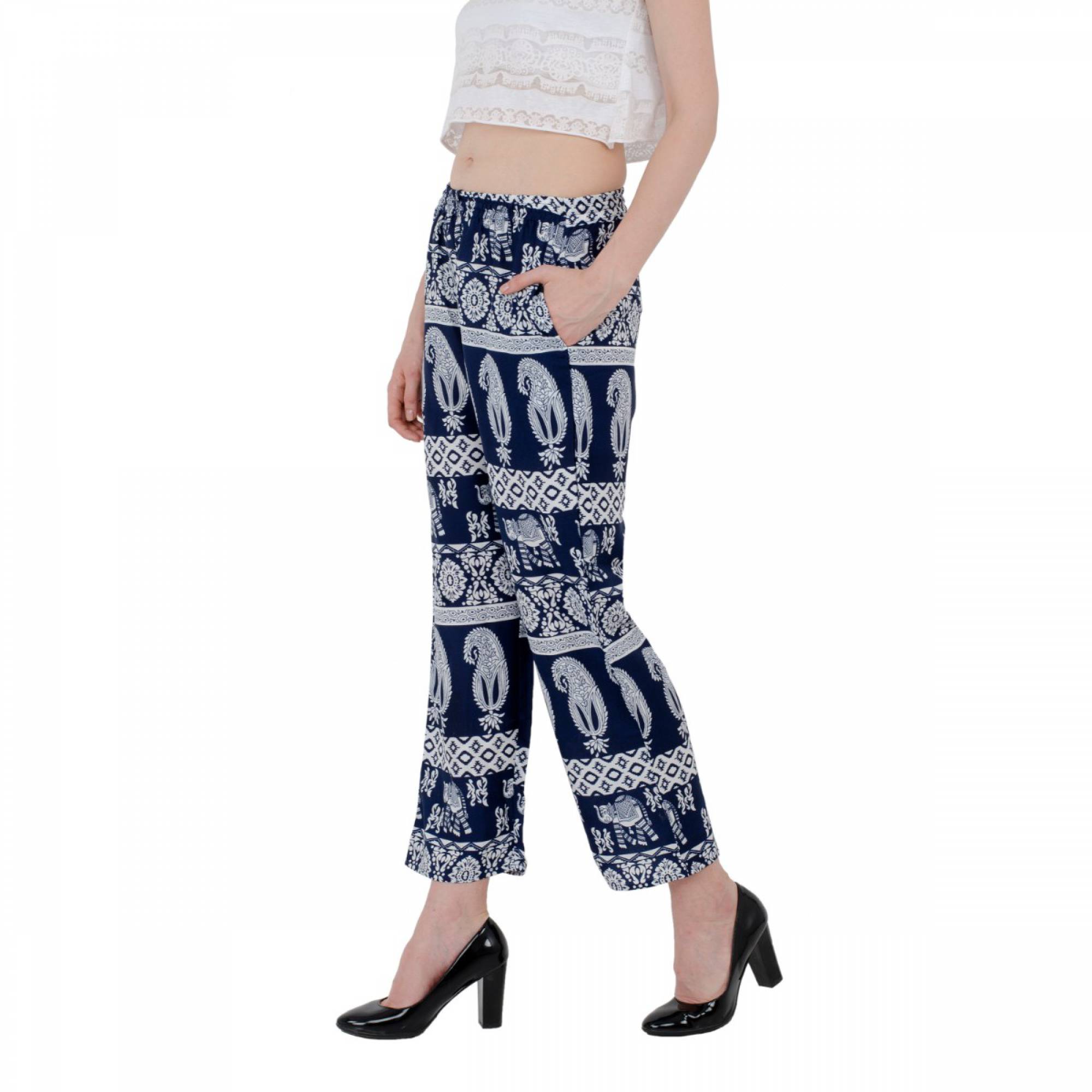 SIVYATI Regular Fit Dark Blue Animal Print Palazzo Pant For Women