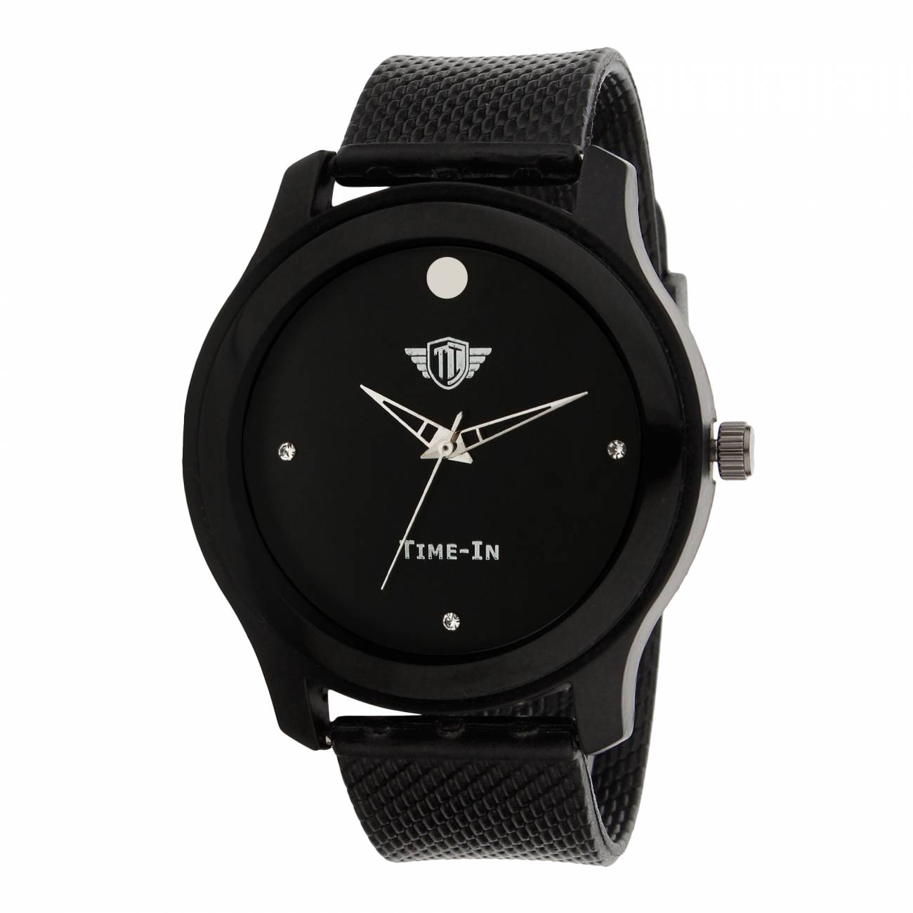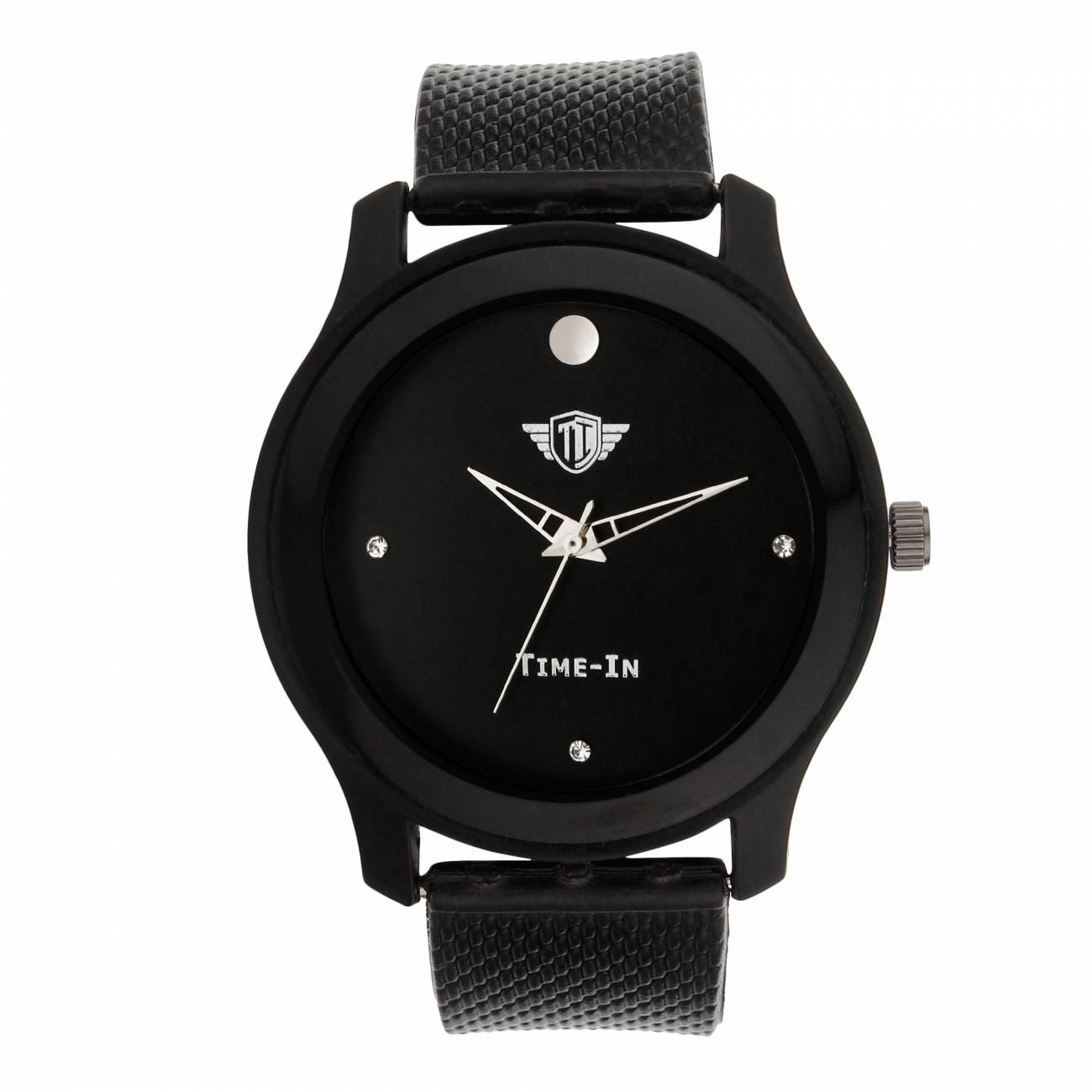 Stay fashionable with latest trend watches from Time-In. This analogue watch has round black color dial.