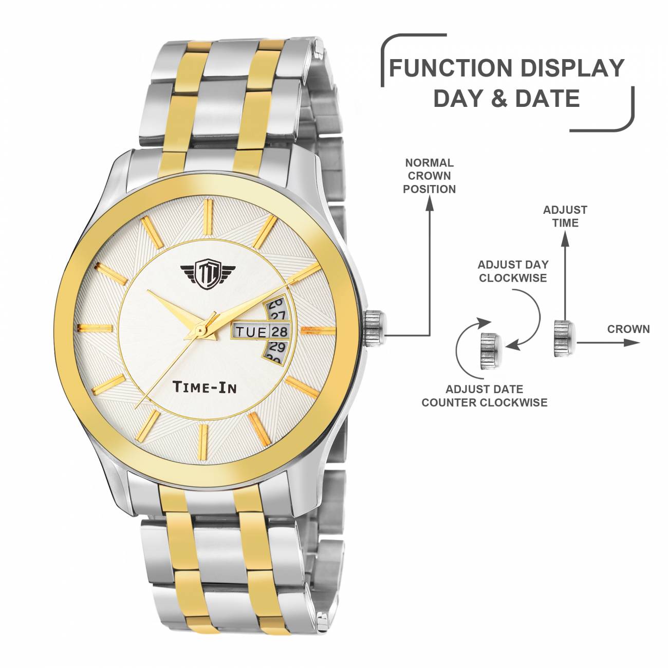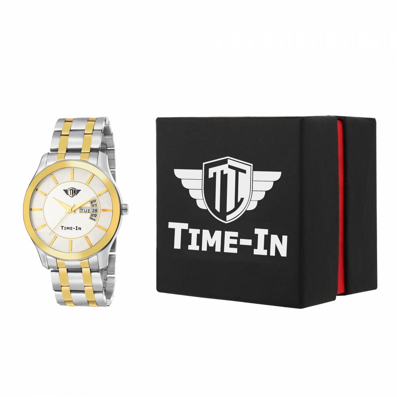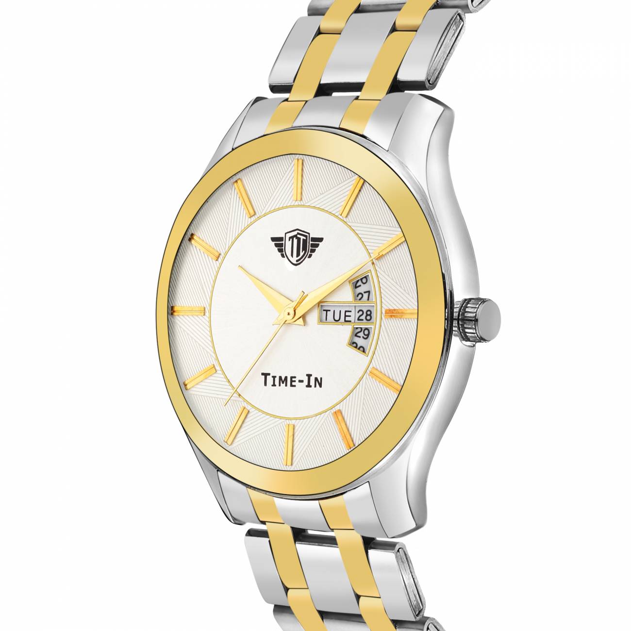 Stay fashionable with latest trend watches from Time-In. This analogue watch has round white color dial.