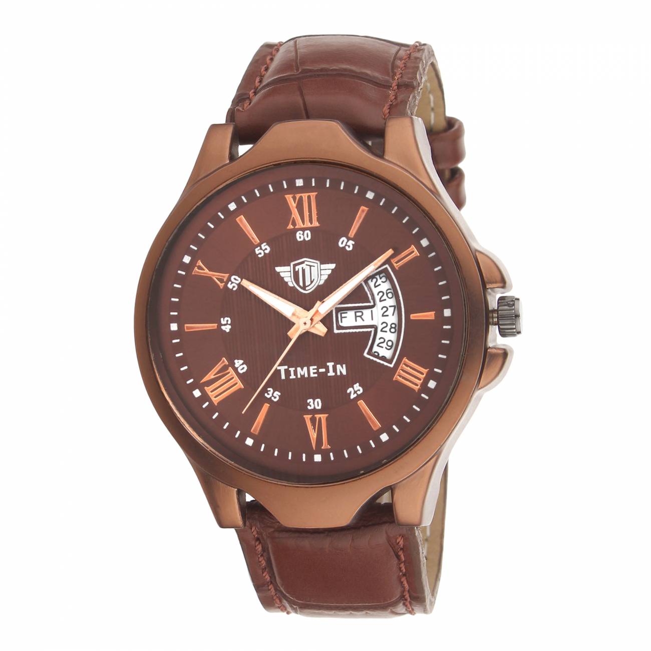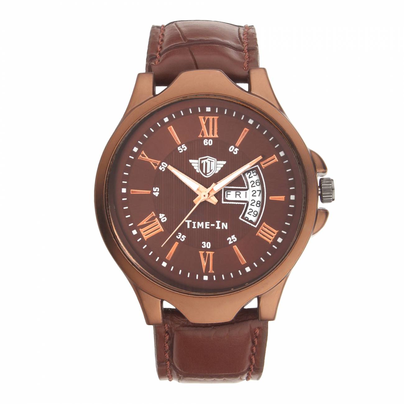 Stay Fashionable With Latest Trend Watches From Time-In. This Analogue Watch Has Round Brown Color Dial.